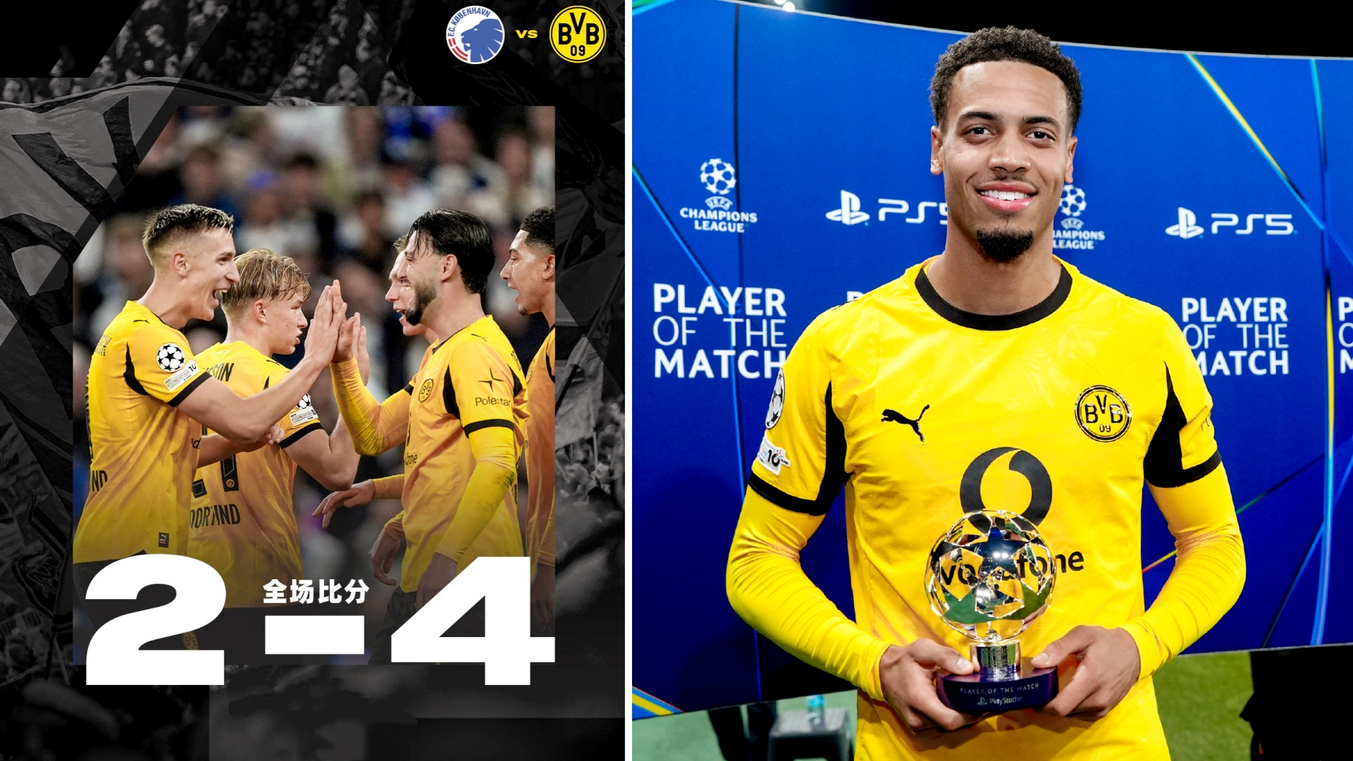 欧冠:多特蒙德客场4-2击败哥本哈根,欧冠两连胜+开局3轮不败。 恩梅查完成双响,本塞拜尼点射,安东自摆乌龙。