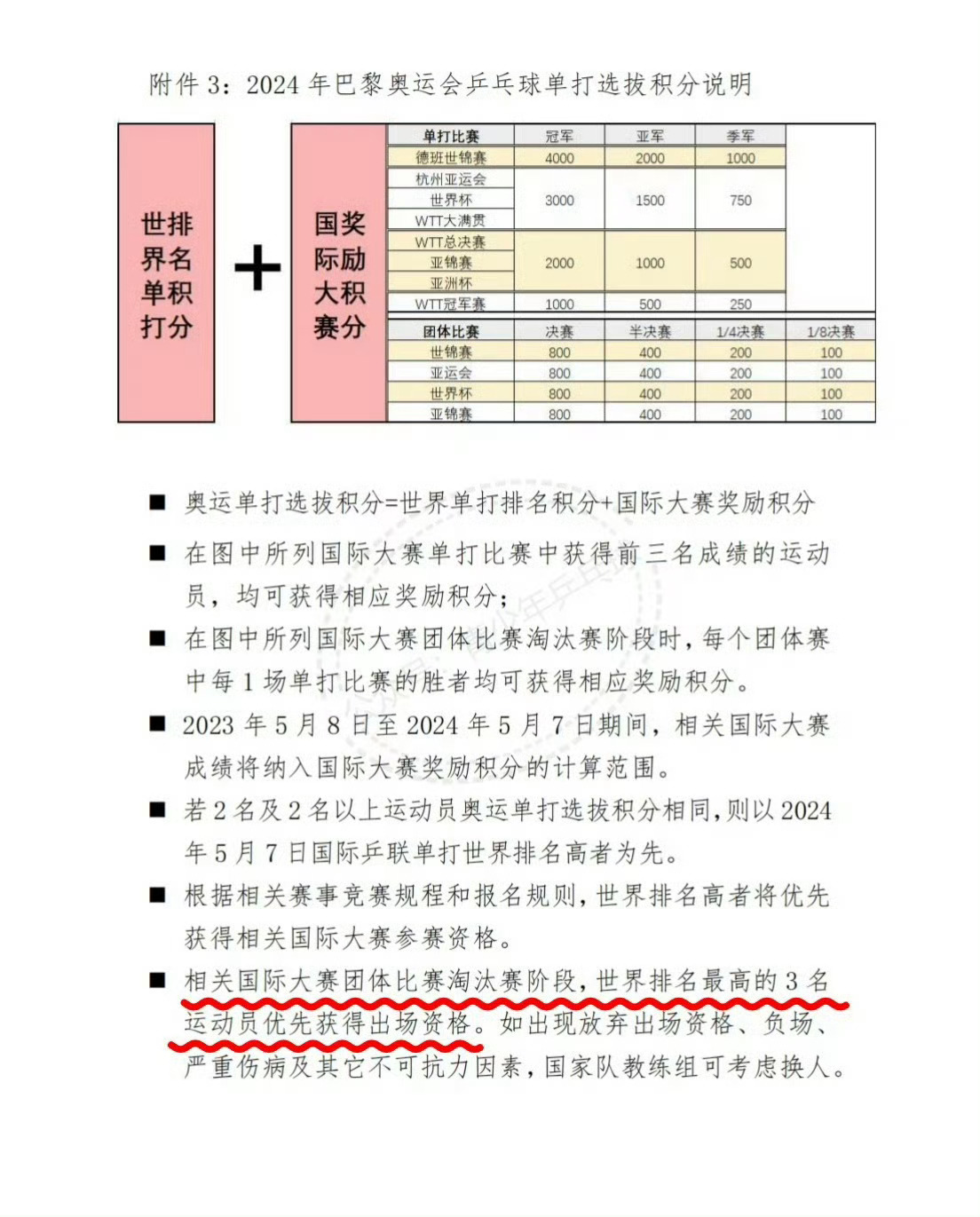关于23亚锦24釜山团体赛淘汰赛上场名额科普——【相关国际大赛团体比赛淘汰赛阶段,世界排名最高的3名运动员优先获得资格】