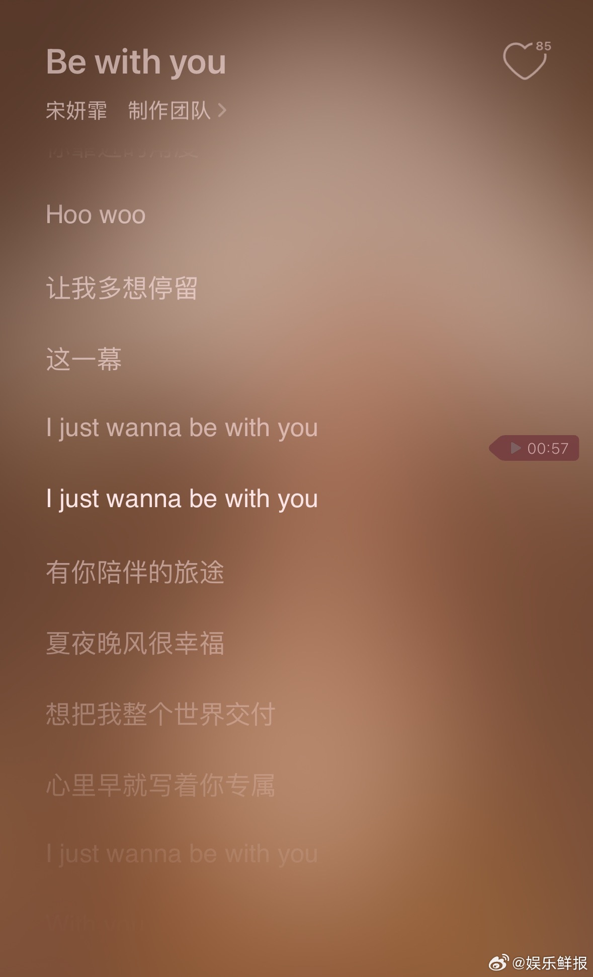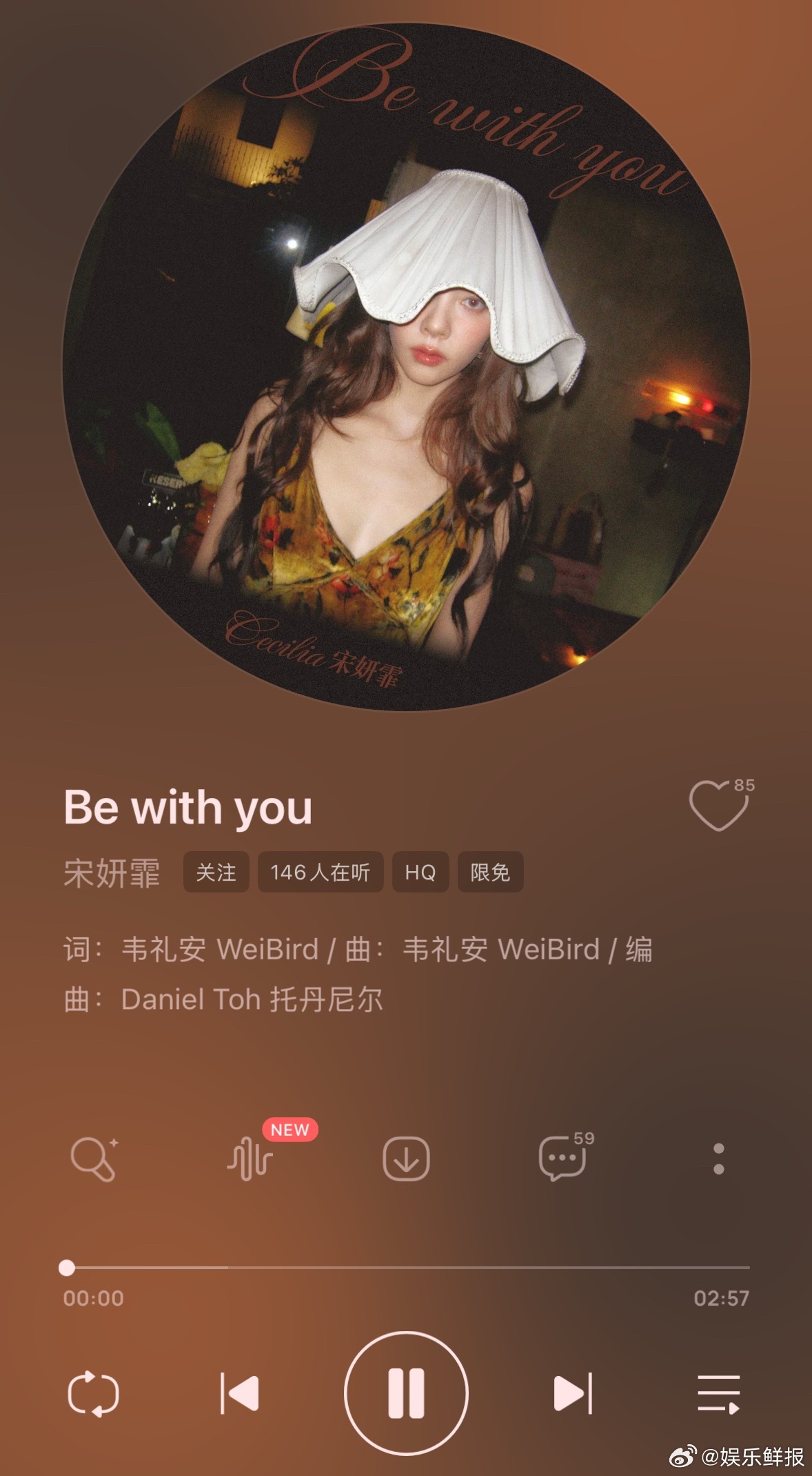 宋妍霏生日单曲《Be with you》已上线,生日曲由韦礼安操刀制作,祝CC生日快乐🎁