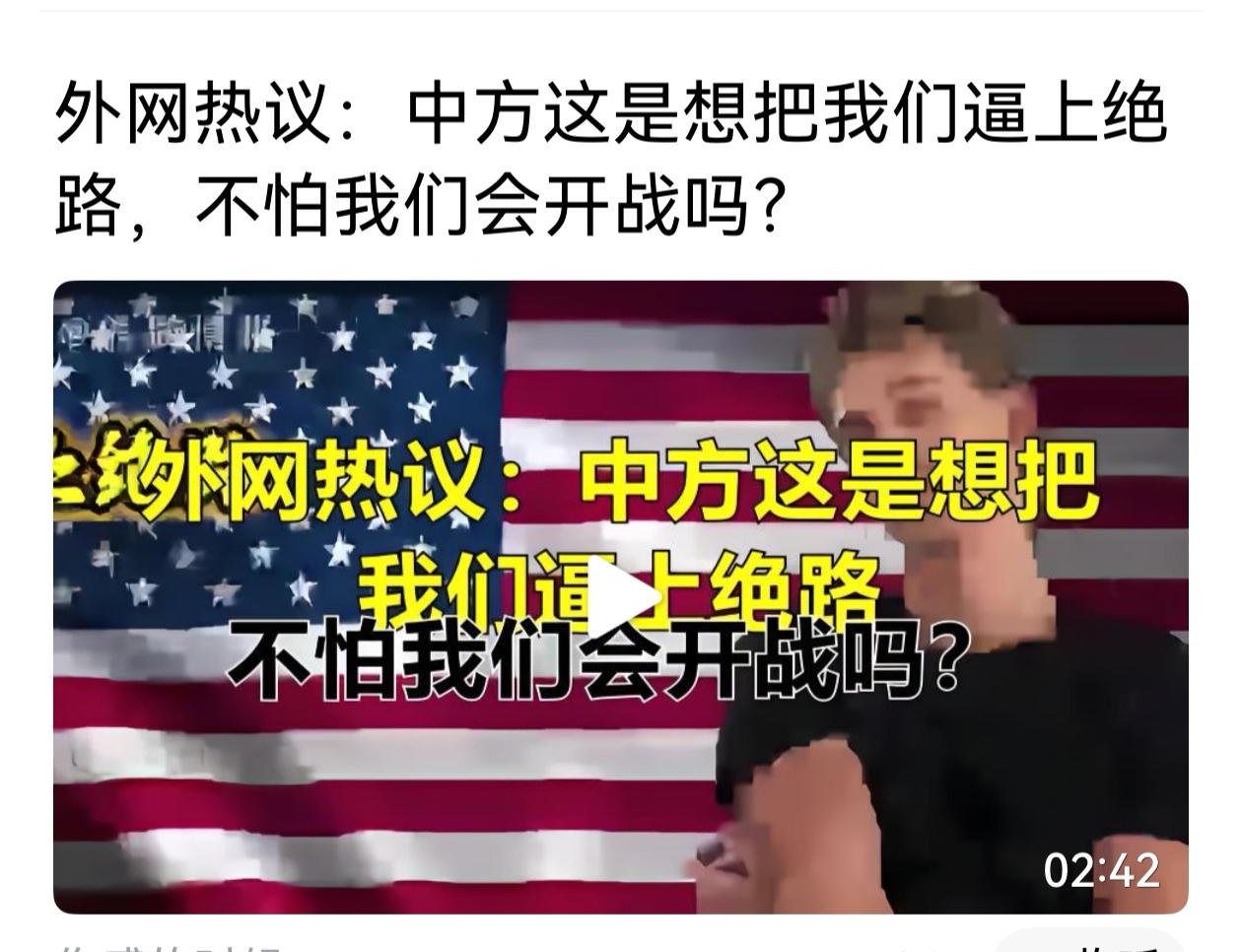 外国网友有点不自量力了,你还活在哪个年代呢?五六十年代,也许你敢这么自信地说,不怕我们开战吗?但放到现在,证明你不识时务。中国只会把你拿开战来说事,看作是幼儿园的小朋友在嬉闹。对中国来说已经没有什么实质的性的意义。你还是回过头去看看五六十年代的朝鲜战争,你们有多大的优势,结果又怎么样呢?现在回过头来再看看中国的实力,你不尿裤子就算不错的啦。只是中国不愿意和你们这些小人和强盗计较。如果你真要作死,可能与中国的首战即是终战。会让你们彻底从世界大国沦为三流的小国。这就是开战的必然结果。爆料 泽连斯基称已准备好结束俄乌冲突 国防部回应澳军机侵闯西沙领空