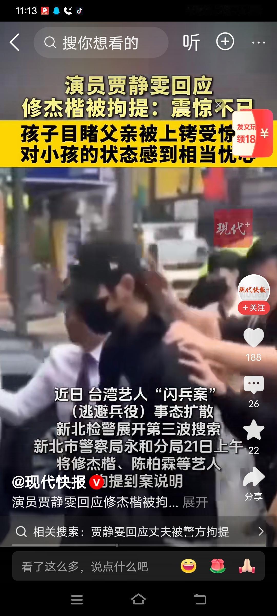 贾静雯回应丈夫逃避兵役被拘提,当全网都在考据‘拘提细节’时,她只用六个字回应。 一切交给司法。 贾静雯这波‘人生如戏’的剧本’不辩解不撕X’的冷静,让我想起赵敏那句‘我偏要勉强’的现代版:‘我偏要优雅’! 为何台湾男星都这么害怕服兵役呢? 唉,我们让子女去当兵还得找关系,不然你还去不了。