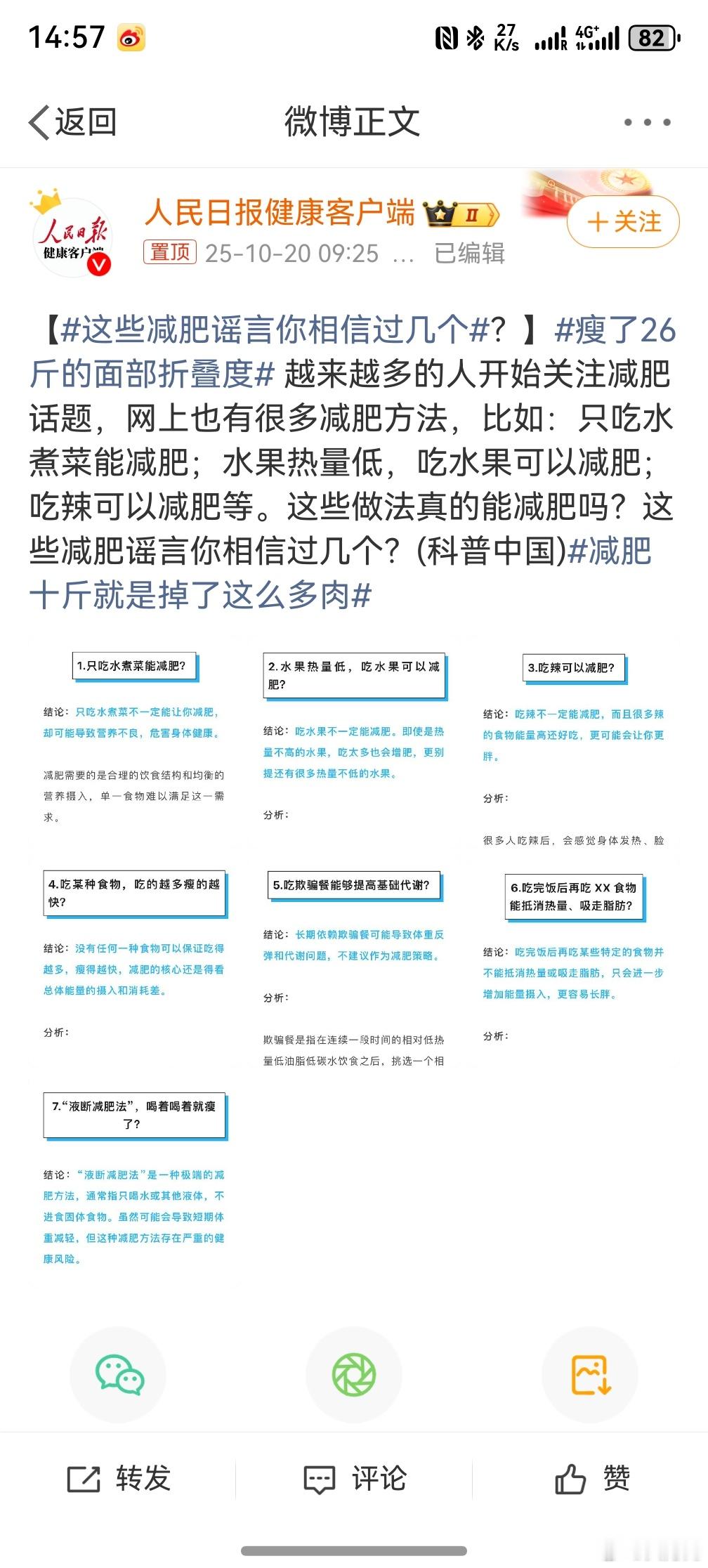 这些减肥谣言你相信过几个 ,每个都信过,每个也都操作过,但还是没有成功过。[捂嘴哭][捂嘴哭]