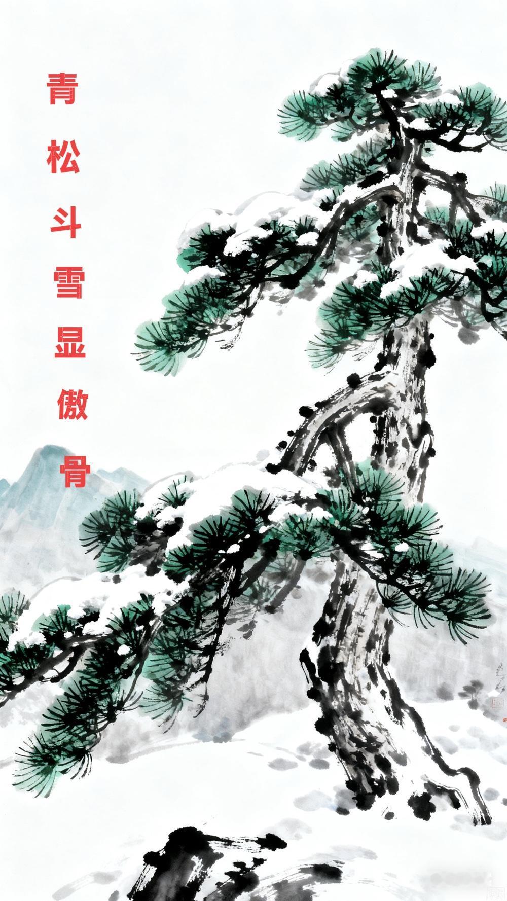 上联:青松斗雪显傲骨 下联:翠竹迎风展气节