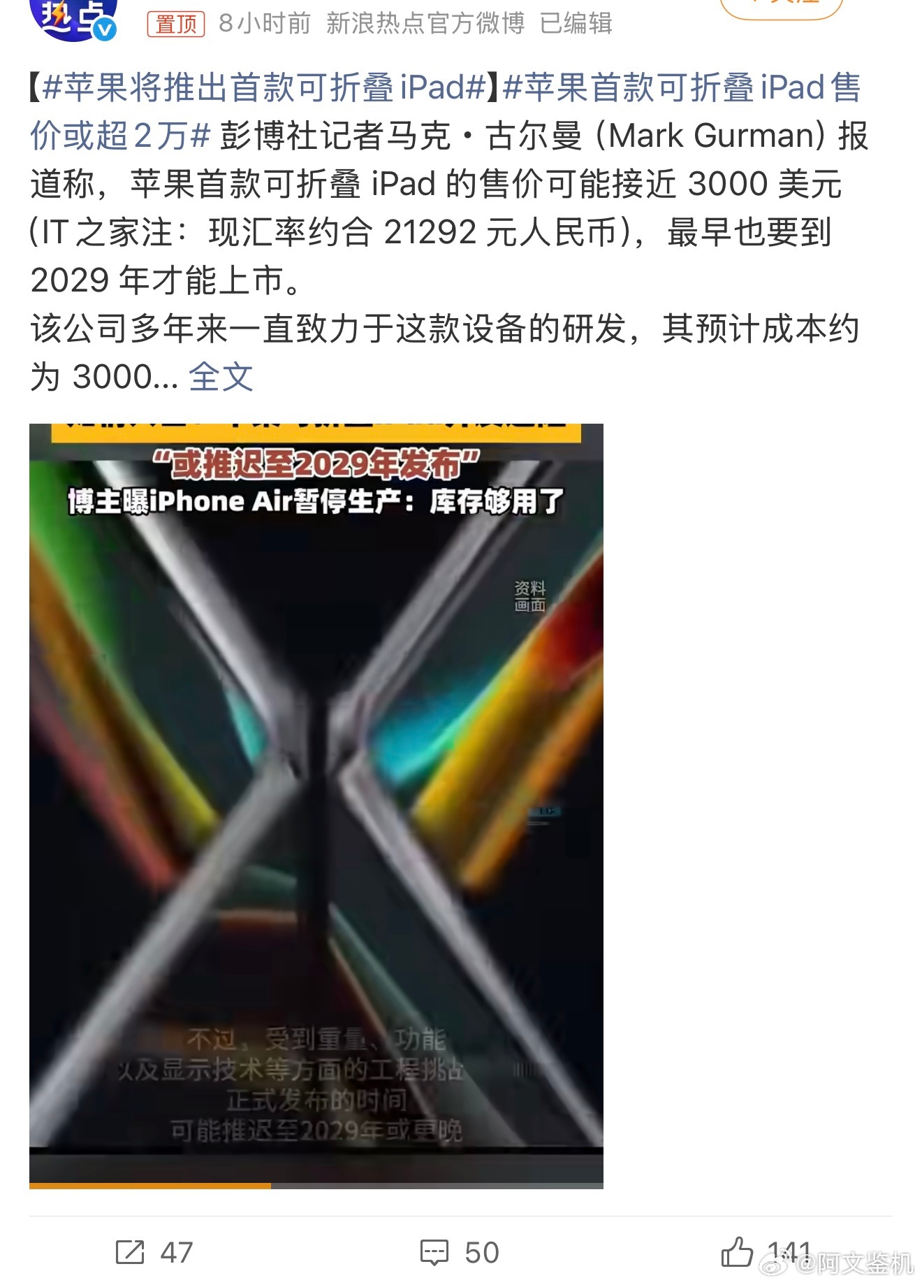 苹果将推出首款可折叠iPad苹果也开始抄作业了,折叠屏iPhone,折叠屏iPad,都是国产厂商玩剩下的,果子还要等那么久才上,如果到时候不能带来颠覆性的体验,最终肯定是会被吐槽,而且按照果子的尿性,连直板机都卖到一万块,那折叠屏不得2万起步啊。
