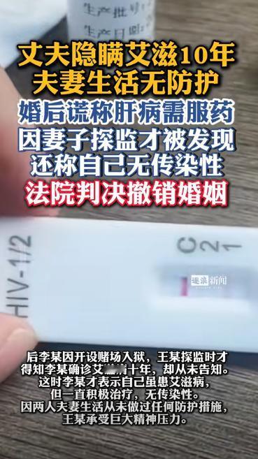 云南,丈夫得了艾滋病谎称肝病,10年间在与妻子过夫妻生活时,从来也没有做过任何防护措施。妻子一直被蒙在鼓里,直到丈夫因开设赌场入狱,在探监时,才得知真相。得知真相的那一刻,妻子直接崩溃了!虽然万幸没有孩子,自己也没有被感染,但妻子仍难以释怀,要求法院撤销婚姻! 云南昆明的李某(化名),从未想过自己掏心掏肺守护的十年婚姻,竟是一场以生命为赌注的骗局。 丈夫王某(化名)隐瞒艾滋病病史,谎称患肝病,十年间毫无防护相处,直到王某因开赌场入狱坦白真相,李某才惊觉自己差点坠入深渊。这场充满欺骗的婚姻,不仅让她心碎,更引发全网对 “婚姻诚信” 的激烈讨论。 2025 年春天,李某提着饭盒去监狱探监时,还在叮嘱消瘦的丈夫 “好好保重”。可王某突然低声说 “我不是肝病”,这句话像惊雷炸懵了她。 十年间的画面瞬间闪回,王某撕掉药瓶标签、用白纸写 “护肝药”,她心疼丈夫,每天提醒吃药、悉心照料,甚至担心他 “肝病” 影响生育,主动去医院调理身体。 她以为的 “患难与共”,竟是丈夫精心编织的谎言。 李某去医院做检查,直到医生告知 “检测结果阴性”,悬着的心才被放下。 她立刻去监狱质问,王某却辩解:“我怕你知道后离开,只是想好好过日子。” 把十年欺骗说成 “爱”,彻底寒了李某的心:“你所谓的爱,是拿我的命当赌注!” 冷静后,李某决定结束这场荒唐的婚姻。她向法院申请撤销婚姻,理由是王某婚前隐瞒艾滋病这一重大疾病,婚姻建立在虚假信息之上。 法院审理后明确,婚姻应以诚信和知情为前提,王某的隐瞒侵犯了李某的知情权,最终支持了她的撤销请求。庭审时,李某没再看王某一眼:“我原谅疾病,但绝不原谅欺骗。” 事件曝光后,网友愤怒指责王某 “等同于谋害”,也为李某的幸运和坚强揪心。 心理专家指出,隐瞒重大传染病不仅突破道德底线,还可能涉法 , 既侵犯配偶知情权,更危及他人生命安全。 这场十年骗局,终究以法律裁决画上句号。它像一面镜子照出婚姻的底线:再多的温情,也抵不过 “欺骗” 二字的杀伤力。 李某的经历提醒所有人:婚姻不是单方面的掌控,而是双向的坦诚;失去诚信的婚姻,再久也只是裹着糖衣的毒药。 对此,你还有什么看法呢? 信息来源 :逐浪新闻