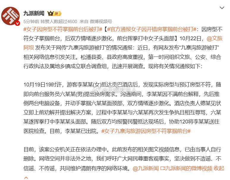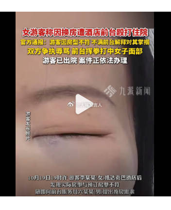女子因房型不符掌掴前台后被打,女子九寨沟旅游因房型不符掌掴前台,热点观点