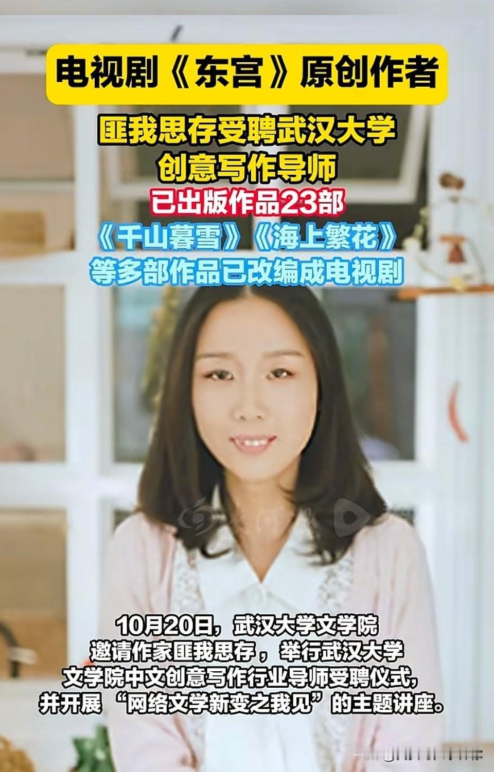 和武大文学院读研的老同学聊天, 他说了件新鲜事。 他说新来的行业导师匪我思存, 跟想象中很不同。 同学讲,没接触前,觉得知名网络作家多少有些距离感。 听了她的讲座才知道,这位老师思维清晰,对网络文学的看法也实在。 她说创作者需要自信,不必盲目跟风,甜文流行时她写悲剧,古装当道时她写现代,重要的是坚持自我。艺术表达带来的精神满足,有时比经济回报更值得追求。 学校新设的非全日制中文创意写作硕士,邀请了15位校外行业导师,匪我思存是其中之一,负责分享创作与市场经验。 同学觉得,这种安排对想从事创作的学生很实用。毕竟匪我思存有23部作品,像《东宫》、《千山暮雪》这些故事,不止被读者熟悉,也成了热播剧,她清楚怎么把想法变成能被大家接受的作品。 武大文学院在写作学科建设上有基础,2006年就设立了全国首个写作学硕士学位点。现在请行业专家加入,算是教学上的一种新尝试,侧重实践和应用。 同学认为,写作这门事,既需学院内的理论沉淀,也离不开一线创作者的切身经验。能让学生接触到真实的创作生态,了解不同文体的写作要领,这课就值得。