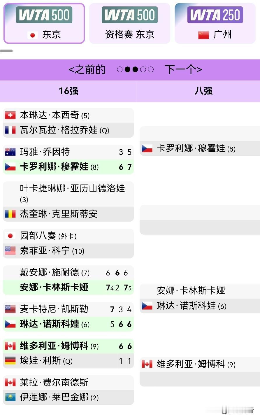 安娜·卡林斯卡娅战胜七号种子施奈德,晋级WTA500东京公开赛八强。 郑钦文缺席,损失500积分。