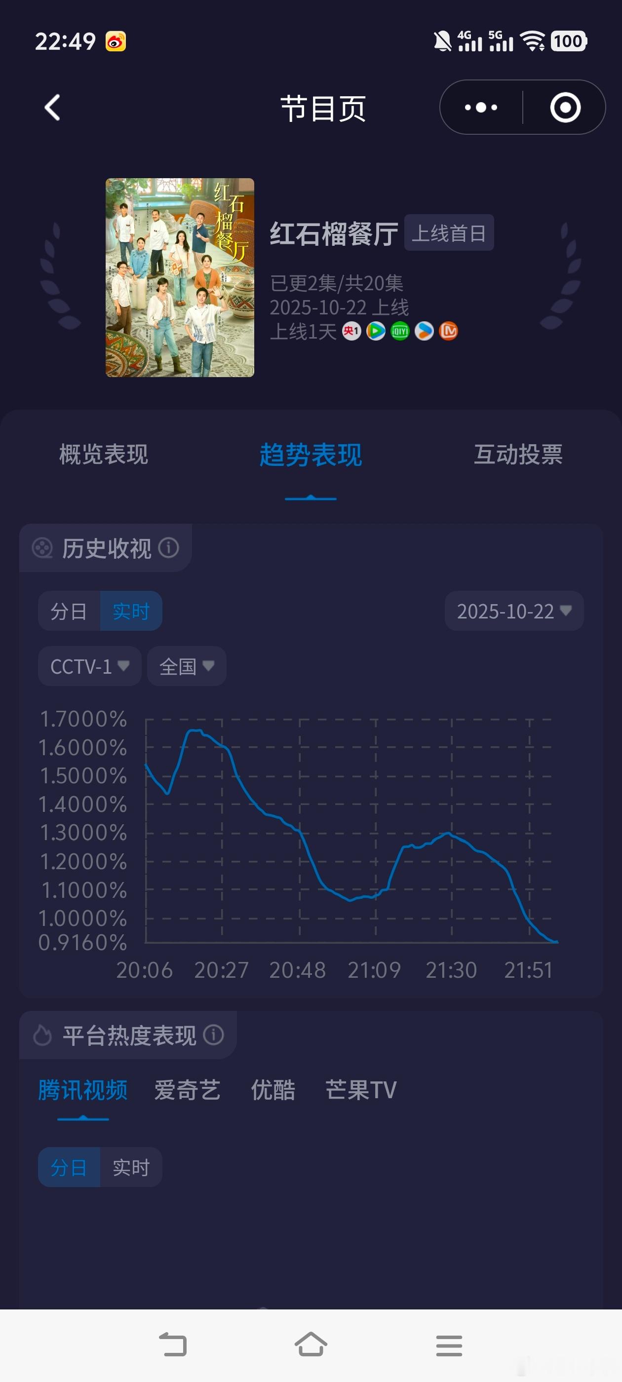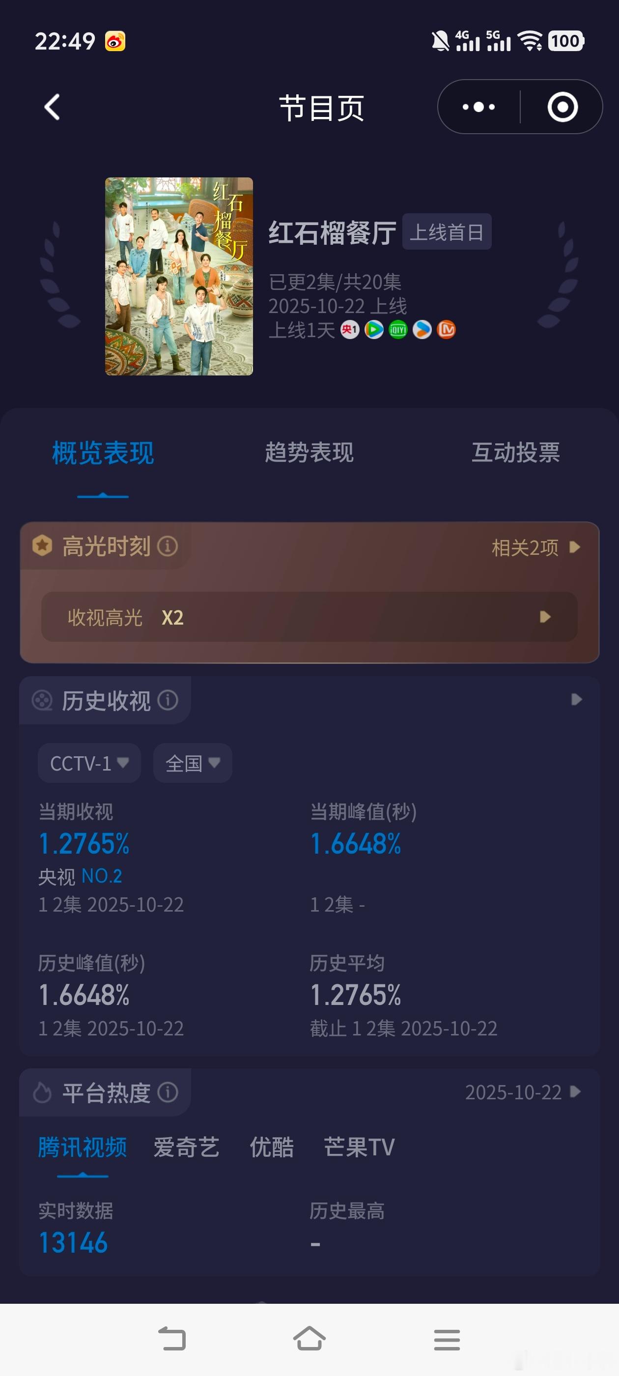 红石榴餐厅开播加奈那一部剧开播一部剧定档 白宇帆《红石榴餐厅》首播收视快报!酷云峰值1.6648,平均1.2765