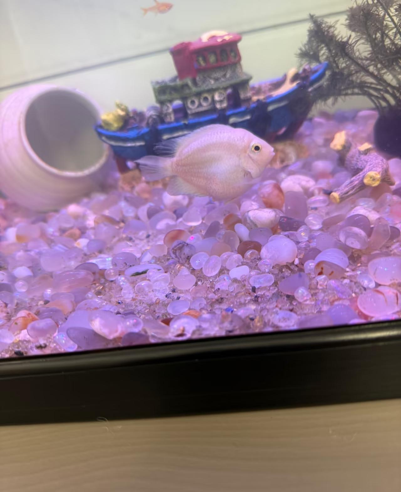 原来养这种鱼,一不小心也会爆缸。 鬼使神差的养了5条迷你鹦鹉鱼,本来没抱有多大希望,没想到,这几条鱼完全适应了鱼缸的环境。 这两天才发现,她们中有几条肚子大了,凭借养孔雀鱼的经验,第六感告诉我,这迷你鹦鹉鱼可能要生。 于是我开始查资料,最简单的一个方法,就是看鱼肚子下面如果出现了小白管,那么不出七天就应该生产了。 其他的生产征兆,比如,公鱼和母鱼频繁的进出产房等。 话说回来,其实迷你鹦鹉鱼非常好养,又是爆缸品种,对于小白也非常友好。