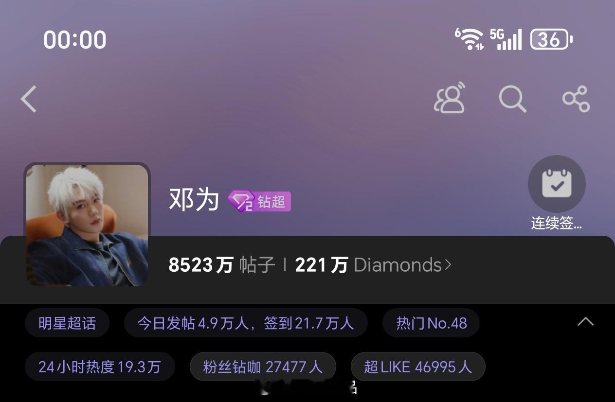 邓为昨日超话发帖4.9万+,超like4.7万+