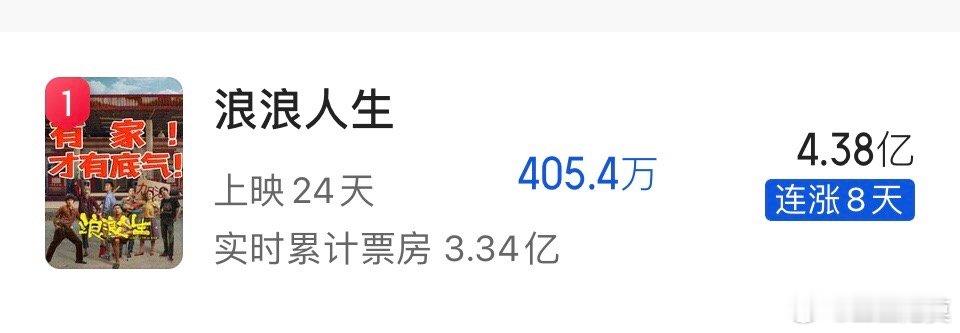 《浪浪人生》连续5天“大满贯”,后劲非常足。预测票房更是连涨8天。