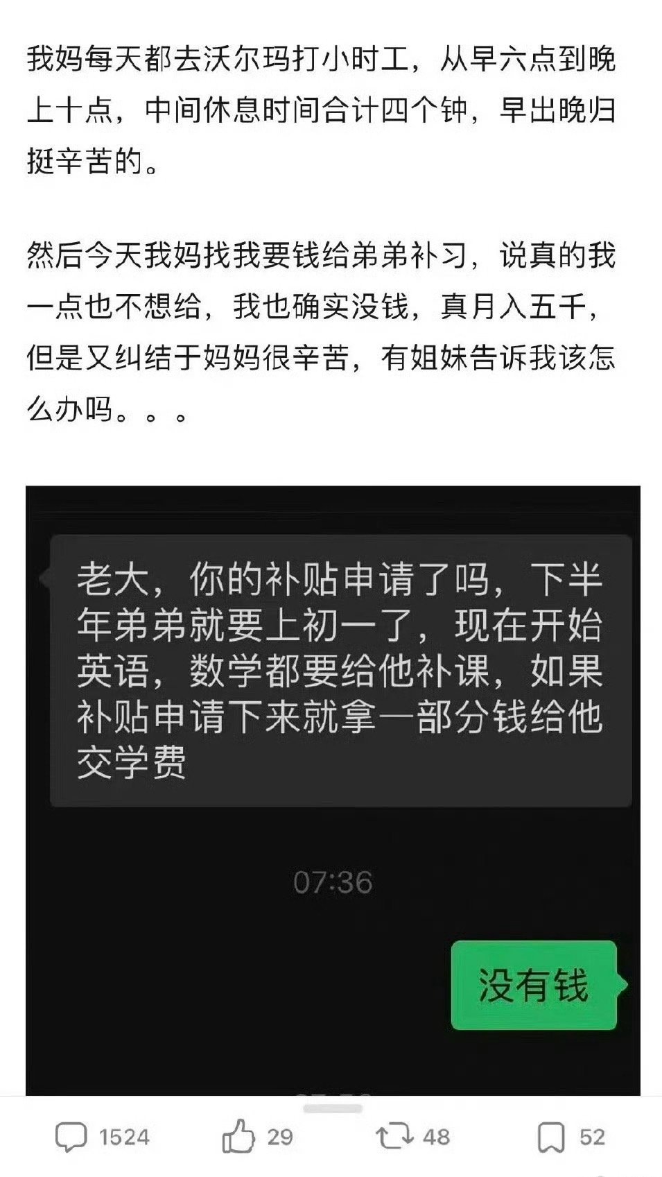 说真的要是给父母治病我给,但弟弟我是一毛不给