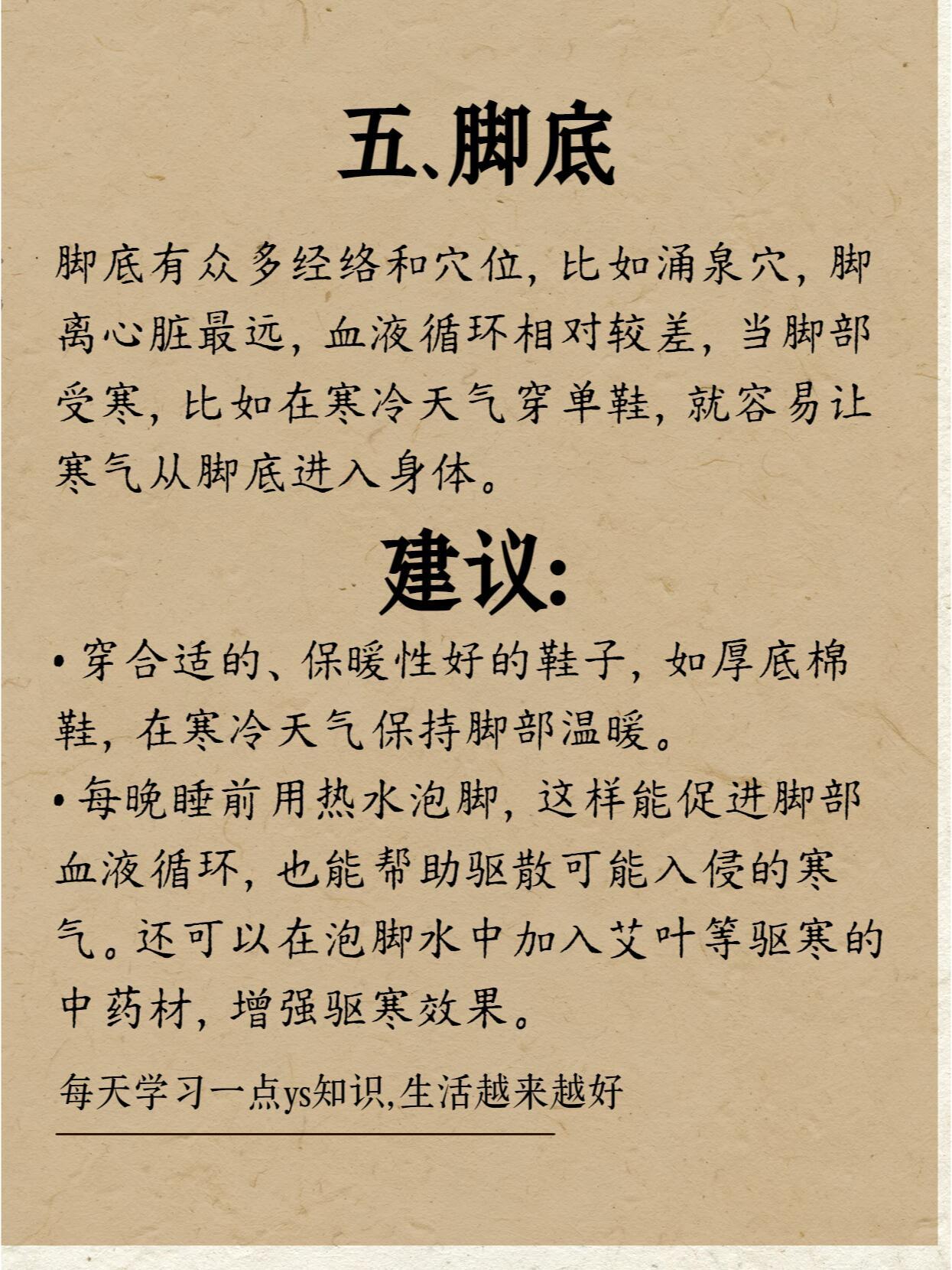 把这几个部位照顾好,全身气血通畅,自然就暖和了。