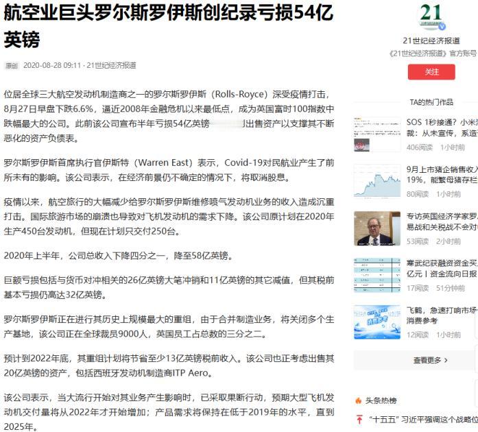 这篇文章是在高度赞扬罗罗不卖核心技术给中国,作者似乎是英国人,建议国安查查作者