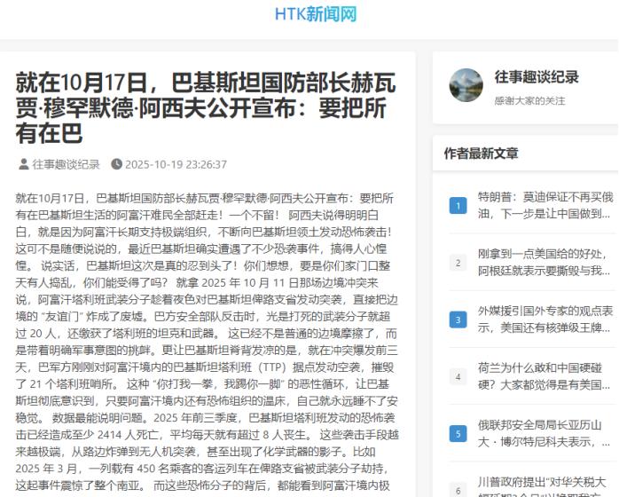 就在10月17日,巴基斯坦国防部长赫瓦贾·穆罕默德·阿西夫公开宣布:要把所有在巴