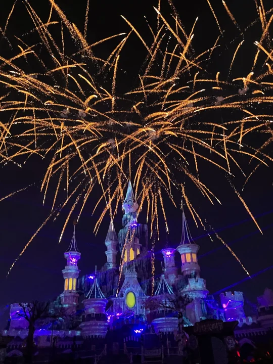 光影配上烟花在夜空炸开的瞬间,像童话王国一样梦幻!