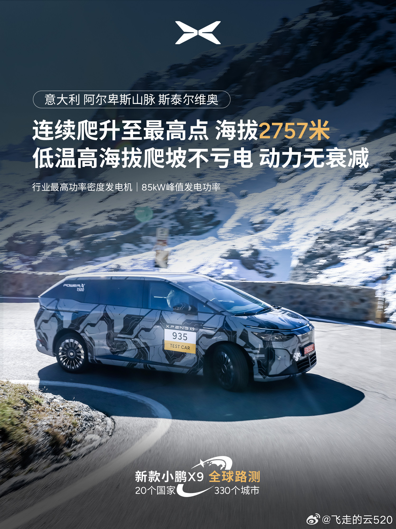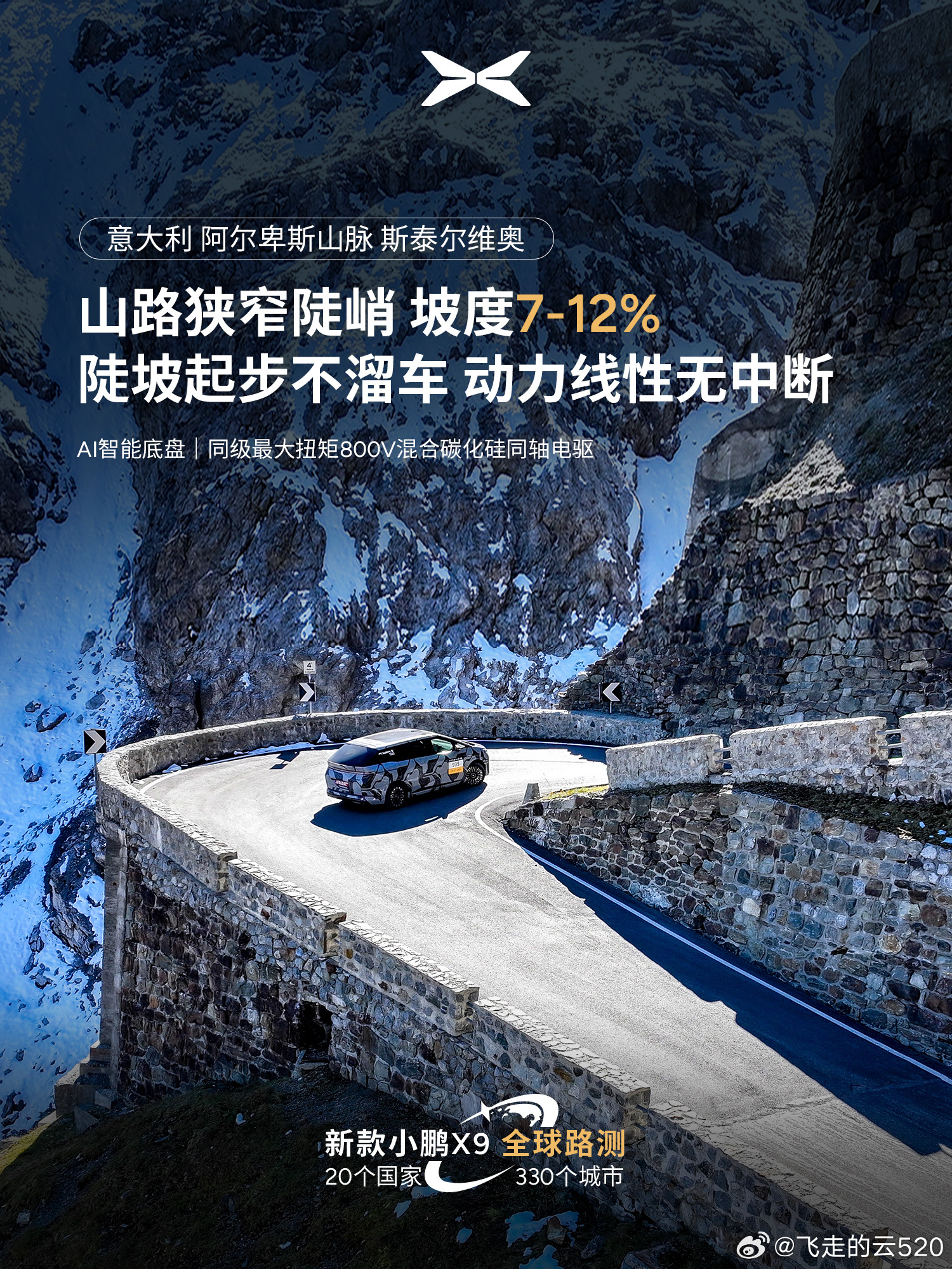 这爬山性能大家满意不满意何小鹏带队全球路测新款X9小鹏X9成功挑战意大利48道魔