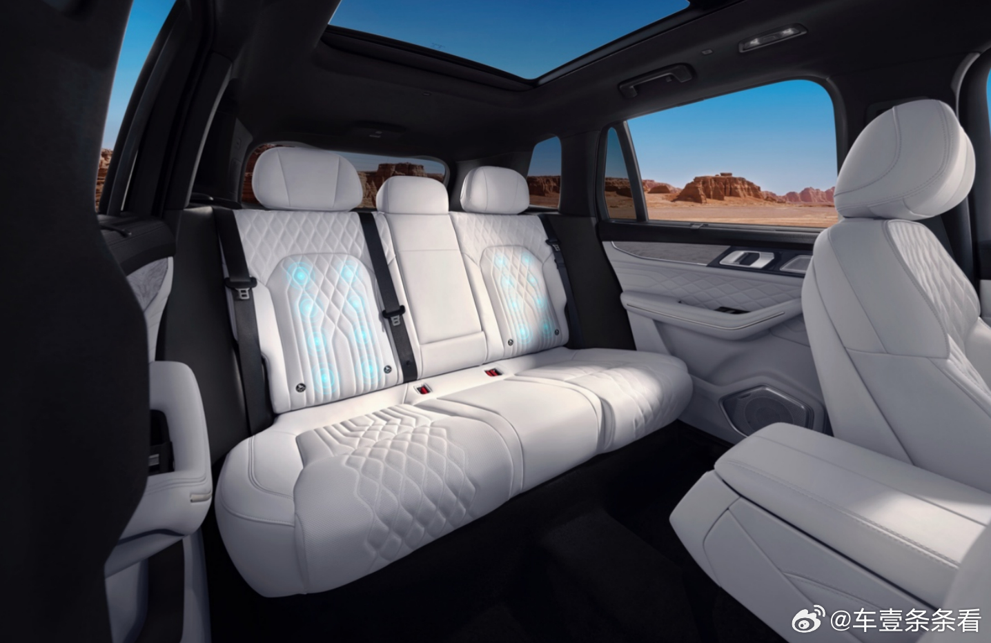 此次领克09最大的变化是“豪华下放”。比如车内二排新增通风、加热、按摩功能,并配有中央扶手、小桌板和BOSE音响等配置。此外,全车Nappa真皮覆盖,三档加热、通风和8点式背部按摩由前排独享进阶为四座同享。