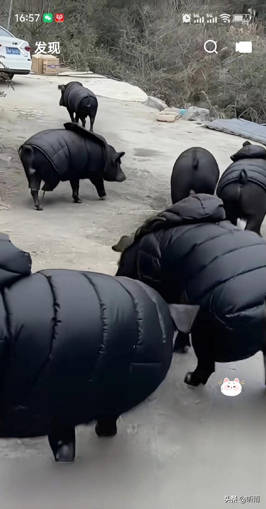 猪🐷穿羽绒服 见过给猫狗穿羽绒服的,给猪穿的真是开眼了!这波操作哪是“多此一举
