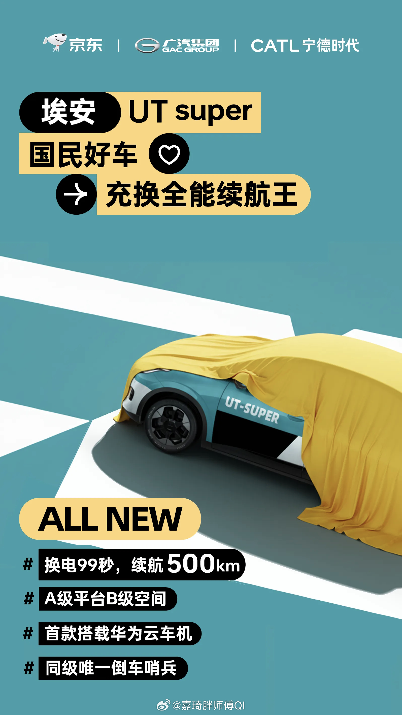 “埃安UTsuper”宁德时代联合京东、广汽集团推出的“国民好车”车型名称正式