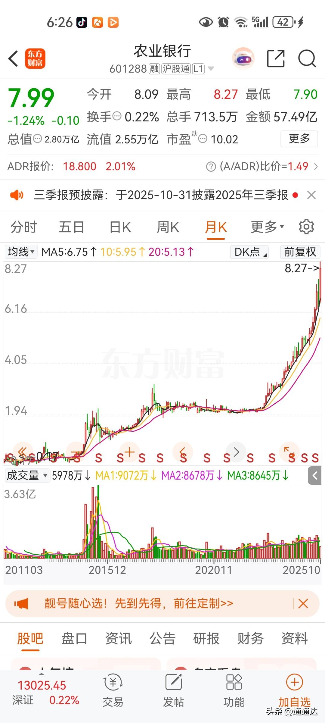 农业银行这两三年涨了四倍,如果股市要稳定上六千点,银行必须再涨一倍,很多低估值的