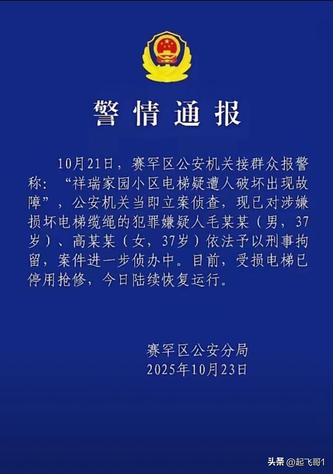 呼市有人割电梯钢丝绳,一小区50部电梯,其中23部电梯被割。 电梯是公共场合,钢丝绳被割直接影响小区居民上下楼的安全,破坏公共财物,影响公共安全。 这是发泄私愤,报复社会,严重影响他人的安全,把大多数人生命安全置于危险之中。 如果电梯在运行中因为钢丝绳被割引起发生命危险,有可能造成多人受伤甚至死亡。 严重影响公共安全,应该从重从快处理,赶快消除对社会的影响。 有这个闲心,干啥不好,这下牢饭吃个够了。而且还影响三代人。