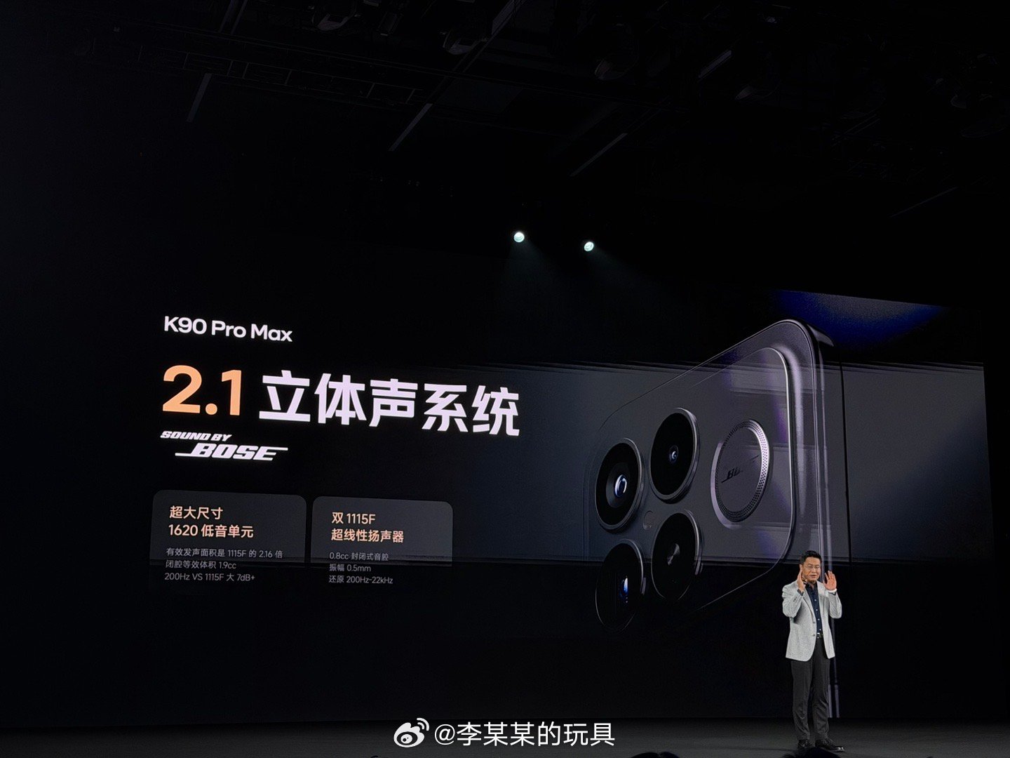REDMI K90 Pro Max 2.1 立体声系统,由两颗超线性扬声器+ 超大尺寸低音单元组成,Sound by Bose 联合调音,号称手机低音炮,行业唯一[666]