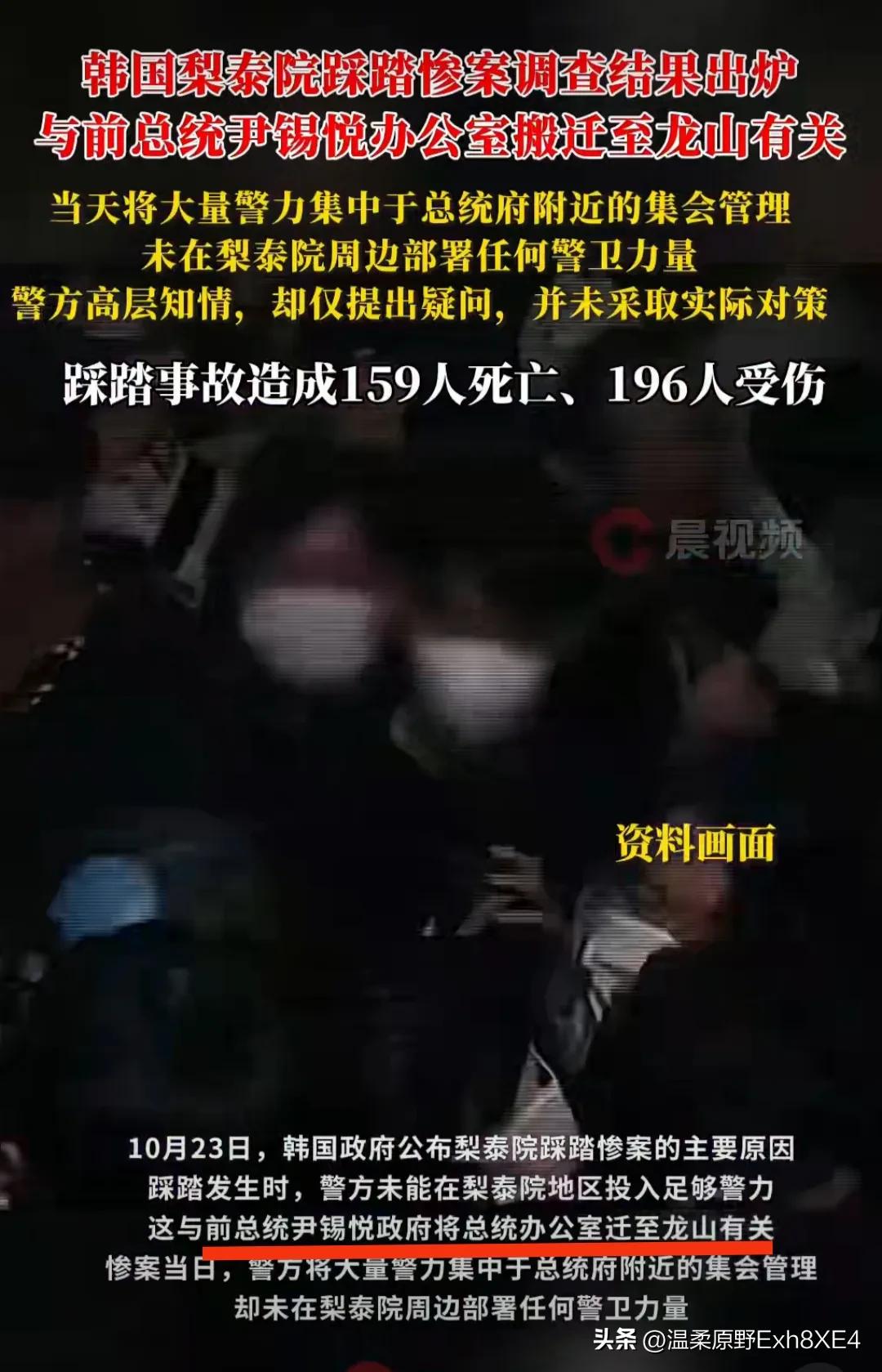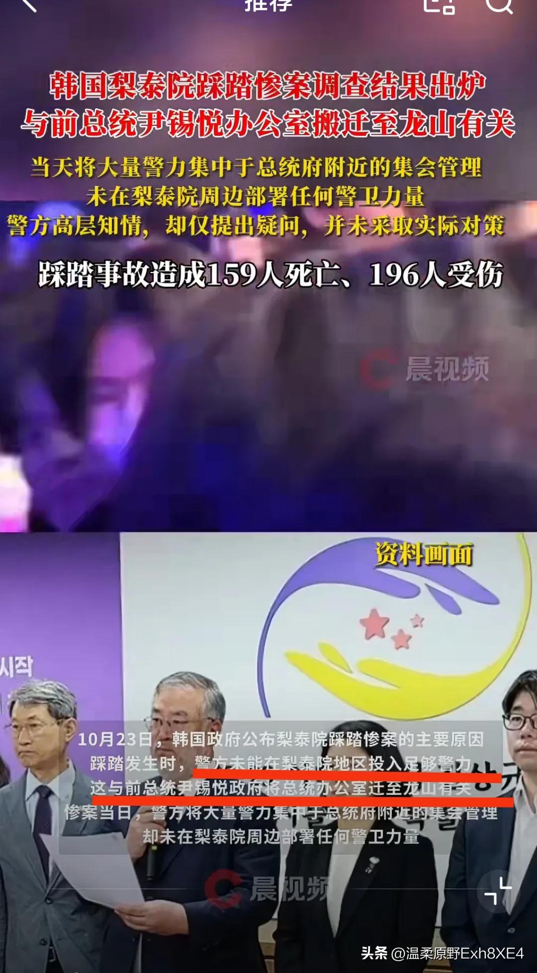三年了,韩国前总统尹锡悦已经进去了,韩国却在这时公布梨泰院踩踏案与前总统办公室搬迁有关。网友:就这事,调查了快3年,得出结论是前总统的错 查了下,尹锡悦22年3月10日当选,梨泰院踩踏是22年10月29日,这时间也对不上啊! 而且事发地是在龙山区,他们却过了这么久才首次对龙山区厅进行审计,得出这个结论。 当时据统计159人死亡(包括外国人),196人受伤。维护治安的几个警察连个喇叭都没带,有人还叫嚷着“使劲推”,才造成这惨剧。不过对于这种节日(韩国人习惯庆祝万圣节),警察局不都是提前部署吗?要说责任也该是局长的责任啊,怎么就成还没上任的总统的责任了! 真是搞不明白,大家明白不![狗头]
