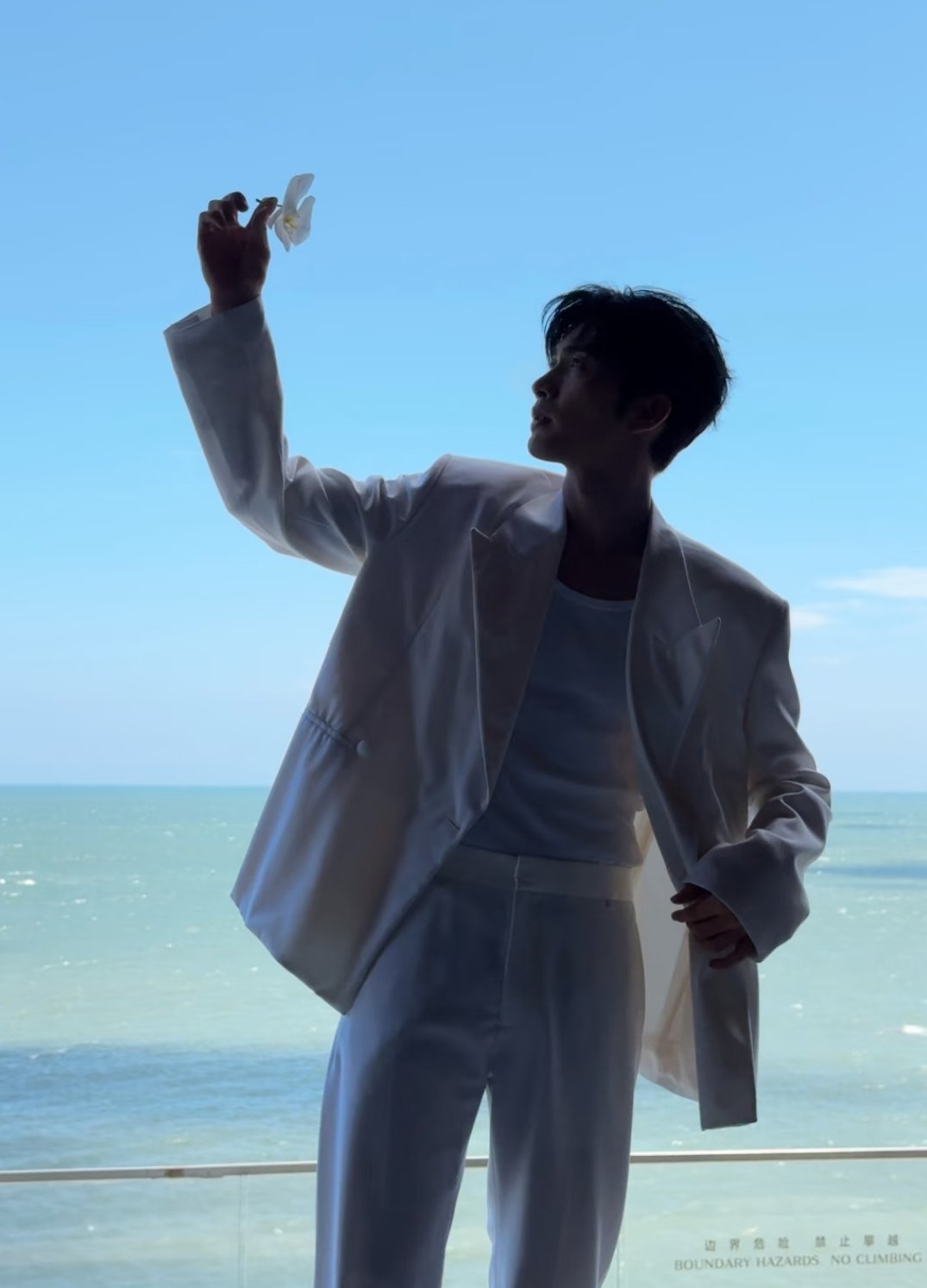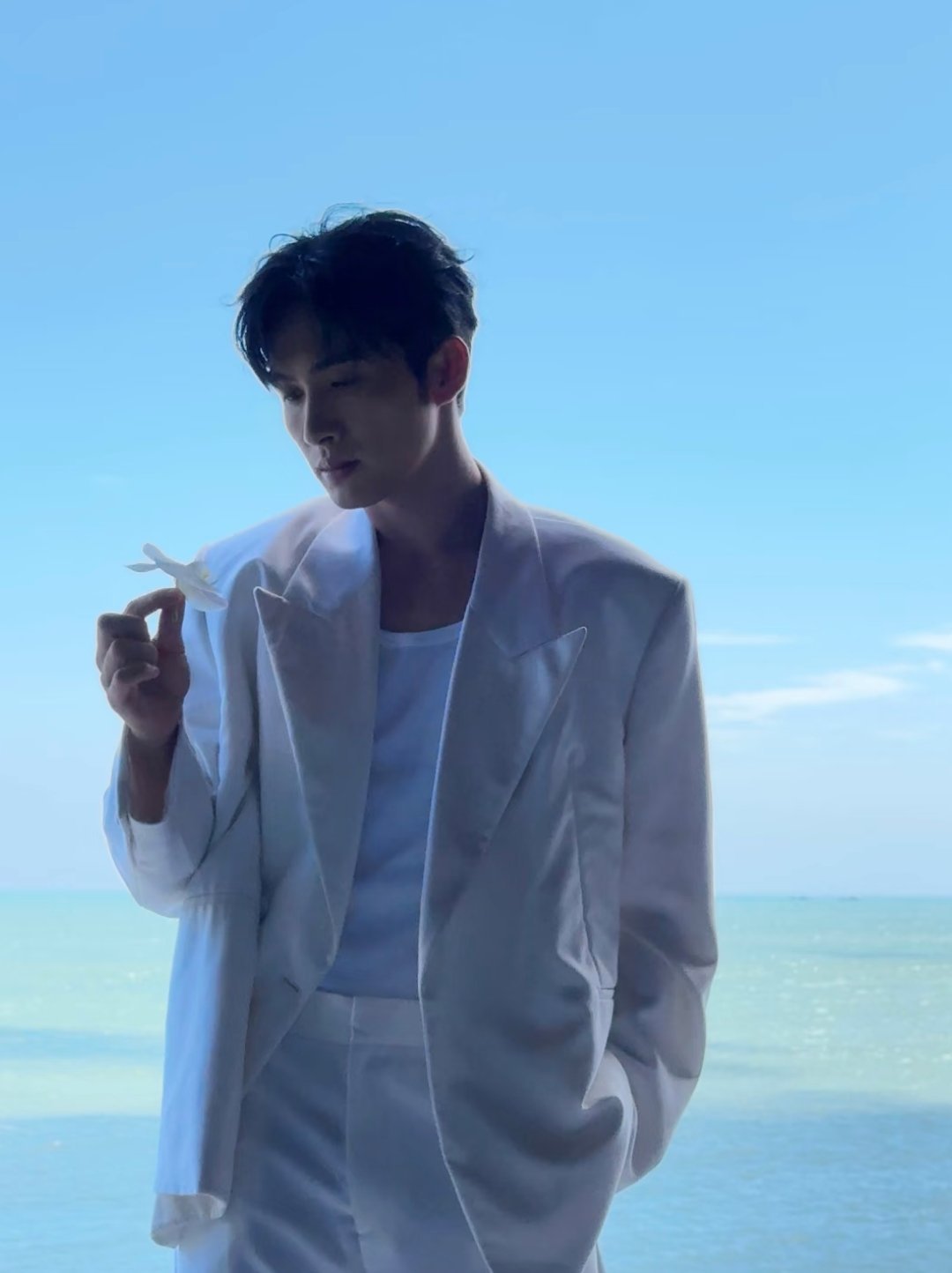 明星丨穿搭丨写真在海边穿白西装套装的张彬彬太帅了吧~
