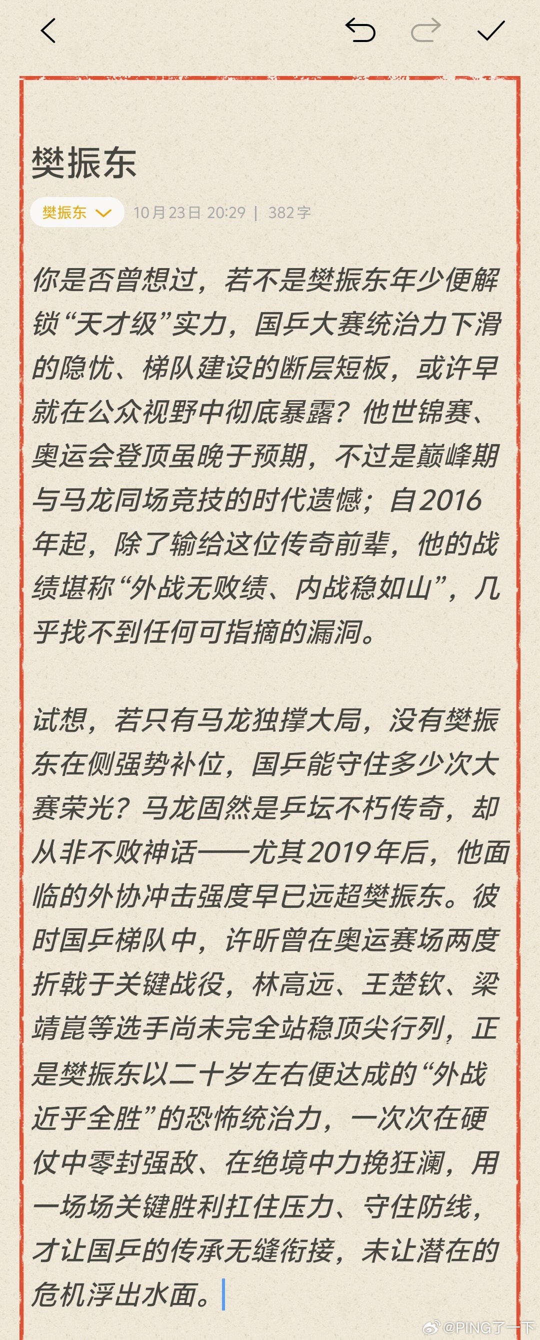 于樊振东而言,或许部分荣誉的到来稍晚,难免留有遗憾;但于中国乒乓球而言,他无疑是