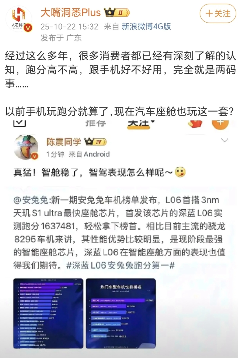 好家伙,真就是汽车跑分也来了,不知道会不会有车厂会在发布会上宣传自己家的车通过安兔兔能跑多少分。 但是我感觉大部分的车企可能都不屑于去在发布会上发布这些东西,而安兔兔平台无非也就是蹭热度,啥都要去插手一下,实际上没啥用处…