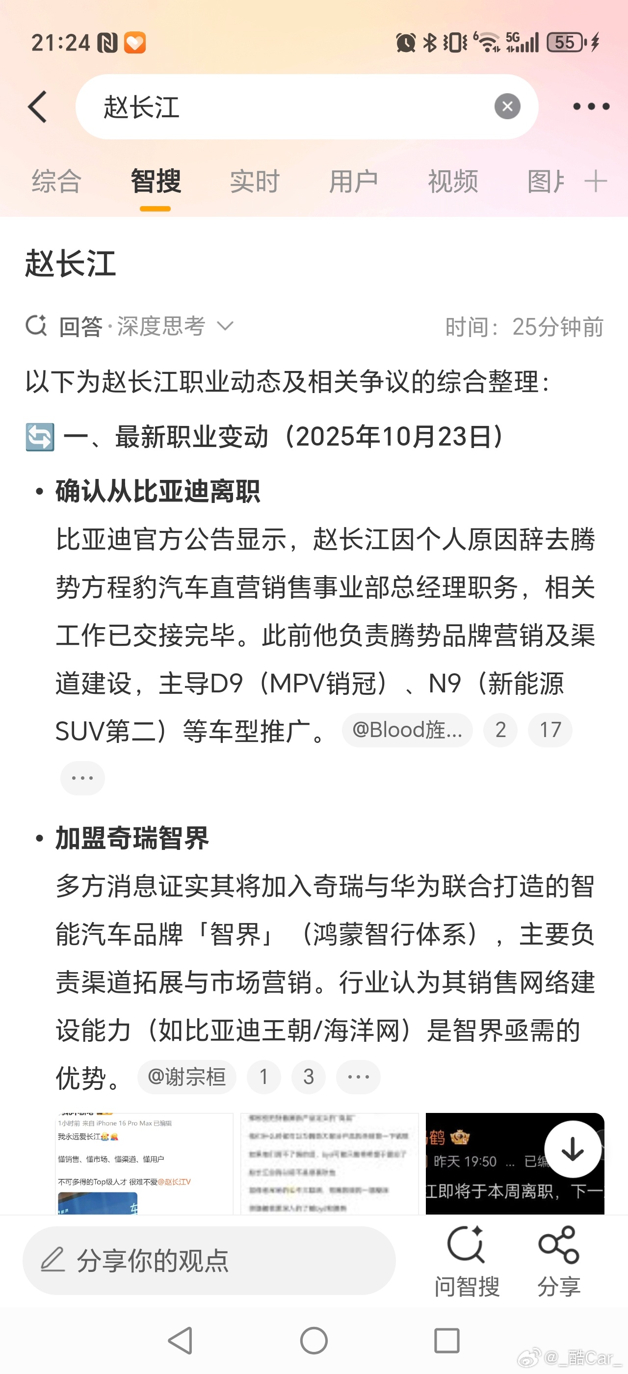 啊?长江总从比亚迪离职?加盟奇瑞智界??[吃惊][吃惊][吃惊]