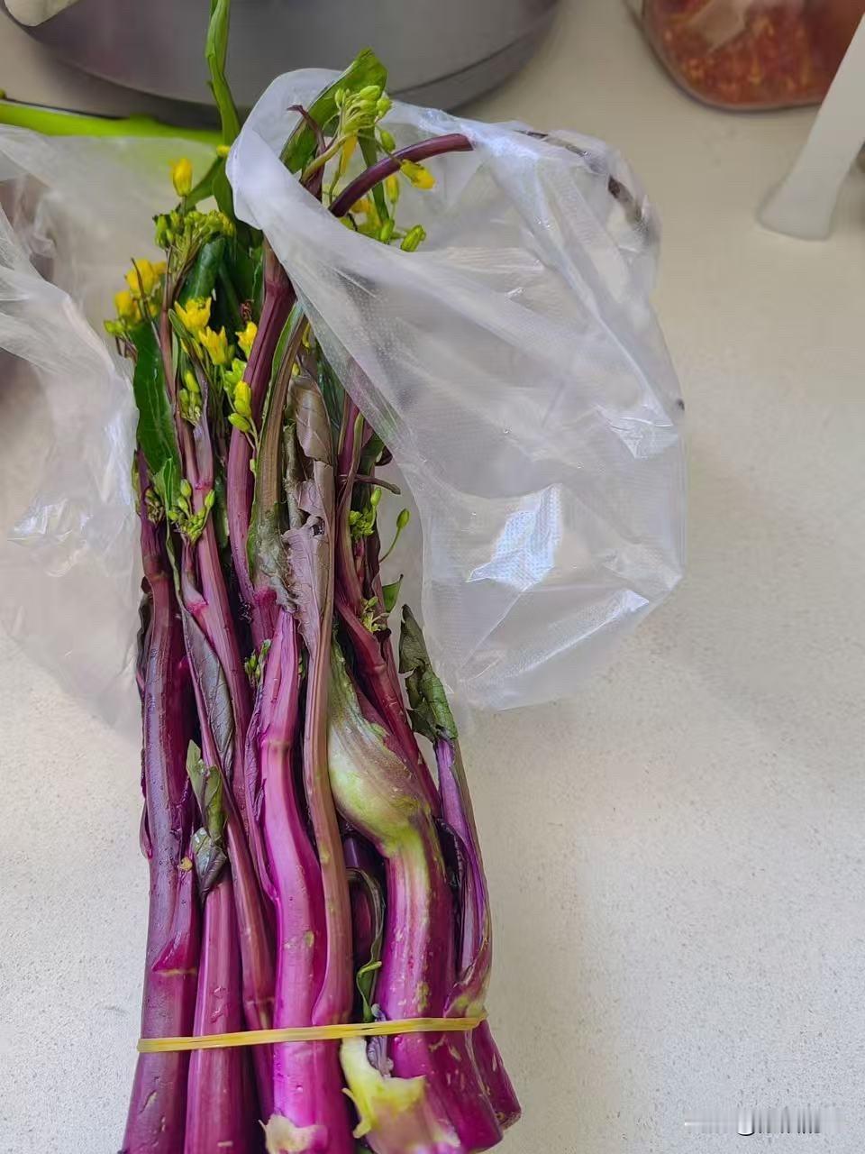 今天买的红菜薹,一把花了12块!这价都快赶上瘦肉了,真有点心疼,但架不住它新鲜啊——看这紫杆杆带着黄花,水灵灵的,看着就嫩。 老板说这是当季菜,现在产量少才贵,过阵子能便宜点。回家清炒加蒜,脆甜口的,配米饭绝了,就是这买菜钱感觉越来越不经花了。 你们那儿这菜啥价?是不是也觉得现在青菜比肉金贵了?