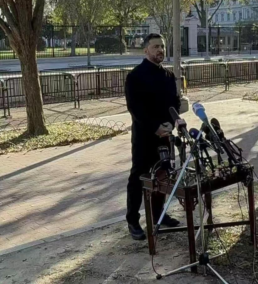 乌克兰总统和乌克兰人视为耻辱,人类历史上的首次。泽连斯基作为一国总统,却不得不在白宫对面的马路边搭个桌子召开记者会. 这场景别说乌克兰人觉得耻辱,搁谁看都觉得离谱,简直是外交史上少见的难堪场面。 咱得先捋明白这事儿的来龙去脉,不是泽连斯基闲得慌非要去路边“摆摊”,是被美国人硬生生逼的。 他这次去美国,本来是奔着要武器去的,想求特朗普给“战斧”导弹,前线快撑不住了,没家伙事儿根本没法打。 结果特朗普根本没心思谈援助,一见面就扔出个“割地换和平”的方案,让乌克兰把顿巴斯地区让给俄罗斯,说这样就能停火,俄罗斯还能还回点其他地方。 这哪儿是谈条件啊,简直是逼乌克兰认输,泽连斯基要是答应了,国内老百姓能把他生吃了,战时总统哪能随便割地,他当场就给拒了。 就因为这声拒绝,特朗普立马翻脸,原定的美乌联合记者会说取消就取消,还明着不让泽连斯基在白宫内开任何记者会,等于直接把人往外赶。 更过分的是,会面本来就晚了点,因为特朗普忙着听意大利歌唱家表演,把泽连斯基晾在侧厅等半天,最后正经谈话就半小时,吃的还是汉堡可乐,连杯水都续得勉强,这哪是招待一国总统,分明是打发叫花子。 会谈结束后更没人送行,是白宫工作人员把他送出大门的,连个像样的礼节都没有。 泽连斯基也是真没办法,他要是就这么灰溜溜走了,不仅武器没要到,还显得乌克兰服软了,国内士气得崩。 他干脆就不挪地方,在白宫对面的拉法叶公园找了张低矮的木桌,摆上几支麦克风,就这么开起了记者会,背景就是白宫和宾夕法尼亚大道的车流,来往的人都能看见。 现场照片里,那桌子小得可怜,麦克风线乱乱糟糟,他站在树影里,脸都显得灰蒙蒙的,跟对面光鲜的白宫比,反差大得刺眼。乌克兰议员看了都忍不住刷屏吐槽,说总统跟被挡在门外的小贩似的。 有人说这是泽连斯基和特朗普互相羞辱,我看根本不是双向的,就是美国仗着自己是大哥,欺负人没商量。 特朗普心里打的算盘精着呢,他正忙着大选,国内好多选民都觉得援乌是浪费钱,他这么刁难泽连斯基,就是做给这些选民看的,显得自己敢“止损”,不跟乌克兰瞎耗。 而且他前几天刚跟普京通了长电话,普京说愿意让步,他就拿着这个当筹码逼泽连斯基,完全把乌克兰当成跟俄罗斯交易的工具,哪管人家国家的死活。 泽连斯基也不是真傻,他选在白宫对面开记者会,就是故意要让全世界看见这一幕。他知道自己没别的筹码,只能用这种“卖惨”的方式博同情,逼美国国会那些还想援乌的议员松口,也逼欧盟赶紧给钱。 结果你还别说,这招真管用,欧盟本来卡在匈牙利那儿的五十亿欧元援助,三天内就批下来了。 说白了,这俩人就是在演双簧,特朗普要选票,泽连斯基要援助,可受苦的是乌克兰老百姓,征兵年龄一降再降,工厂三班倒赶造武器,前线士兵在战壕里拼命,最后却成了大国博弈的棋子。 最让人恶心的是特朗普那副嘴脸,一边逼着泽连斯基割地,一边还威胁他“普京会灭了你”,转头又说俄罗斯经济“状况极佳”,这不明摆着帮着外人压自己盟友吗。 别说乌克兰人觉得耻辱,连欧洲盟友都看不过去,波兰总理直接站出来说,该施压的是俄罗斯,不是乌克兰。 可欧盟也硬气不起来,安全得靠美国撑着,只能夹在中间和稀泥,发个声明都不敢点名批评美国。 这事儿之所以说是“人类历史首次”,不是说没人在户外开记者会,是没人把一国总统逼到这份上。 白宫是什么地方?号称“民主灯塔”的象征,结果在对面马路边,一国元首得搭桌子发声,这哪是羞辱泽连斯基个人,分明是打乌克兰整个国家的脸。 泽连斯基自己也清楚,他站在那桌子后面说“乌克兰会战斗到底”,看似硬气,其实满是无奈——要是有别的办法,谁愿意在大庭广众之下受这委屈? 现在这局面也明摆着了,美国想抽身,特朗普不想再砸钱,普京等着乌克兰让步,欧盟左右为难,只有乌克兰被架在火上烤。 那张路边的小桌子很快会被收走,但这事儿留下的裂痕补不上了,美国和乌克兰的矛盾摆到了台面上,乌克兰想再靠美国撑腰,只会越来越难。 说到底,弱国无外交这话真是一点不假,乌克兰要是自己有实力,哪用得着看别人脸色,更不会让自己的总统被逼到马路边开记者会,这份耻辱,本质上就是实力不济的无奈啊。