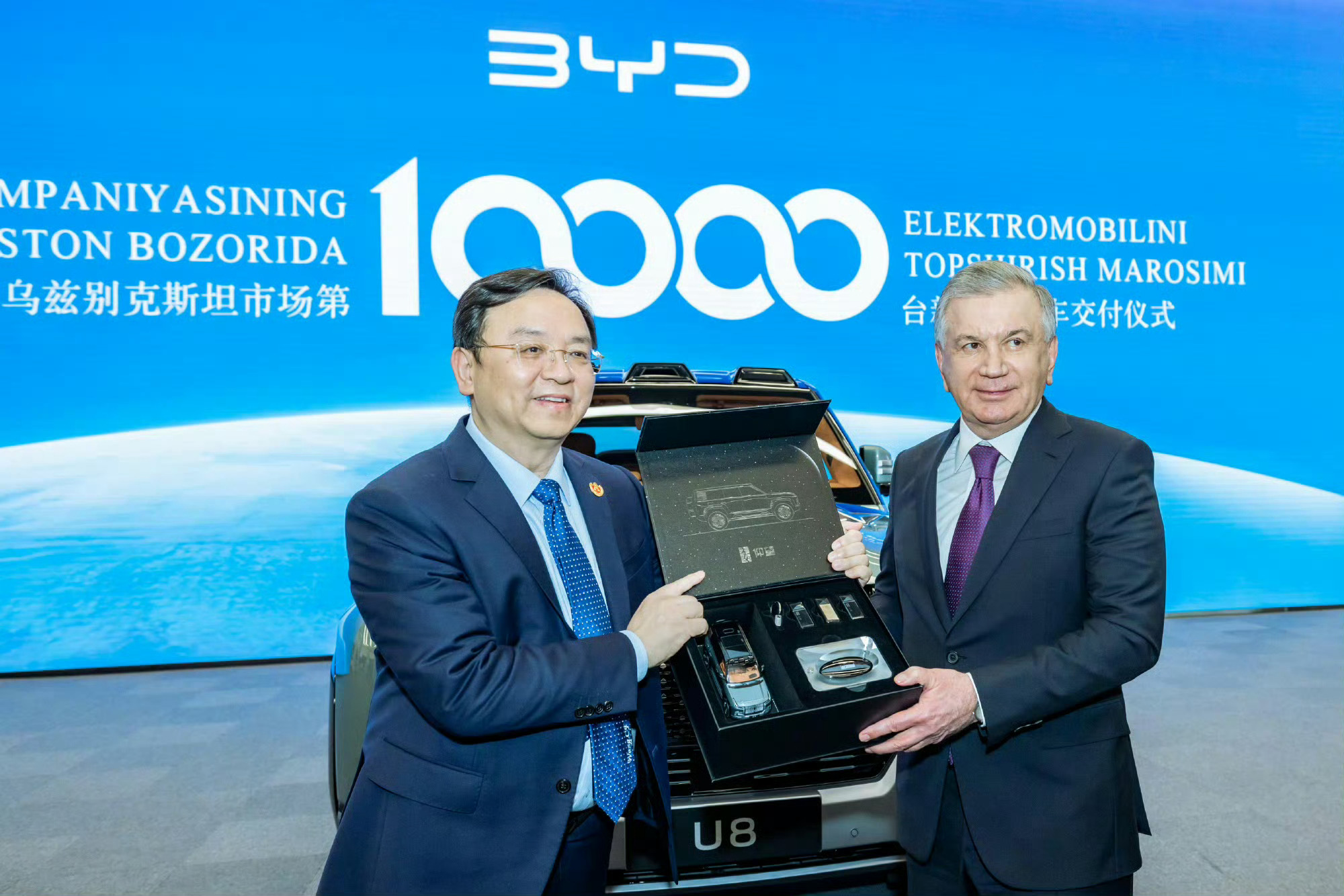2024年乌兹别克斯坦总统米尔济约耶夫率代表团访问比亚迪全球总部,王传福董事长代表比亚迪向米尔济约耶夫总统交付仰望U8,仰望U8也成为了总统座驾!