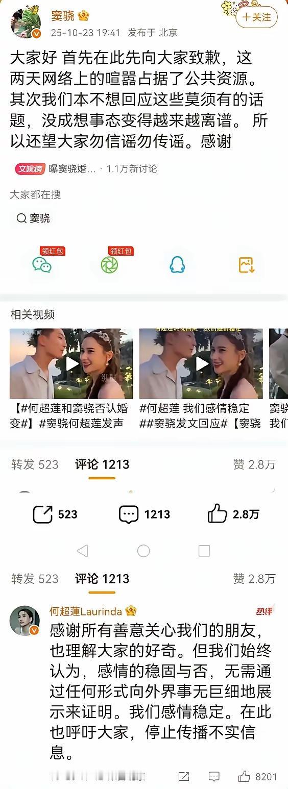 向太啥也没有说,窦骁辟谣了! 窦骁今晚发声,自己和超莲好着呢,什么婚变,那是谣传,根本没有那回事。 何超莲对大家的关心或好奇心表示理解,但认为自己的私事不需要向公众证明什么。 至于风波,总有吹风的地方,向太也无需再考验什么了,说实在的,能有窦骁这么顾及超莲情绪的人,真的不多了。 俩人就积极备孕吧,拿出爱情的果实,给猎奇的人看,比辟谣强百倍。 何超莲窦骁恋情 何超莲婚变 窦骁演技
