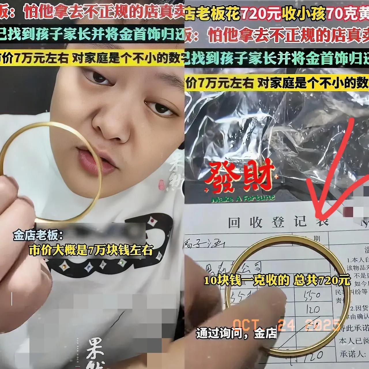 这个金店老板出名了! 四川雅安一小孩去金店卖首饰,金店老板以720元回收70克黄金,随后就赶紧联系家长把首饰还了回去。换作旁人,说不定早盯着眼前的利益了,可他偏不——一眼就察觉不对劲,怕孩子是偷拿家里的,更怕孩子被其他黑心商家坑了,硬是守住了底线,也保住了一个普通家庭的血汗钱! 这年头,有人为了钱钻空子,可这位老板却在利益面前选择了善良。他赚的不仅是生意,更是人心;守的不仅是店铺规矩,更是做人的底线。比起那些冷冰冰的算计,这种自带温度的举动,才是最打动人的! 其实善良从不是什么难事,有时候不过是在利益面前多一分考量,在诱惑面前多一分坚守。你身边有没有过这样温暖又靠谱的陌生人?来聊聊你的经历~
