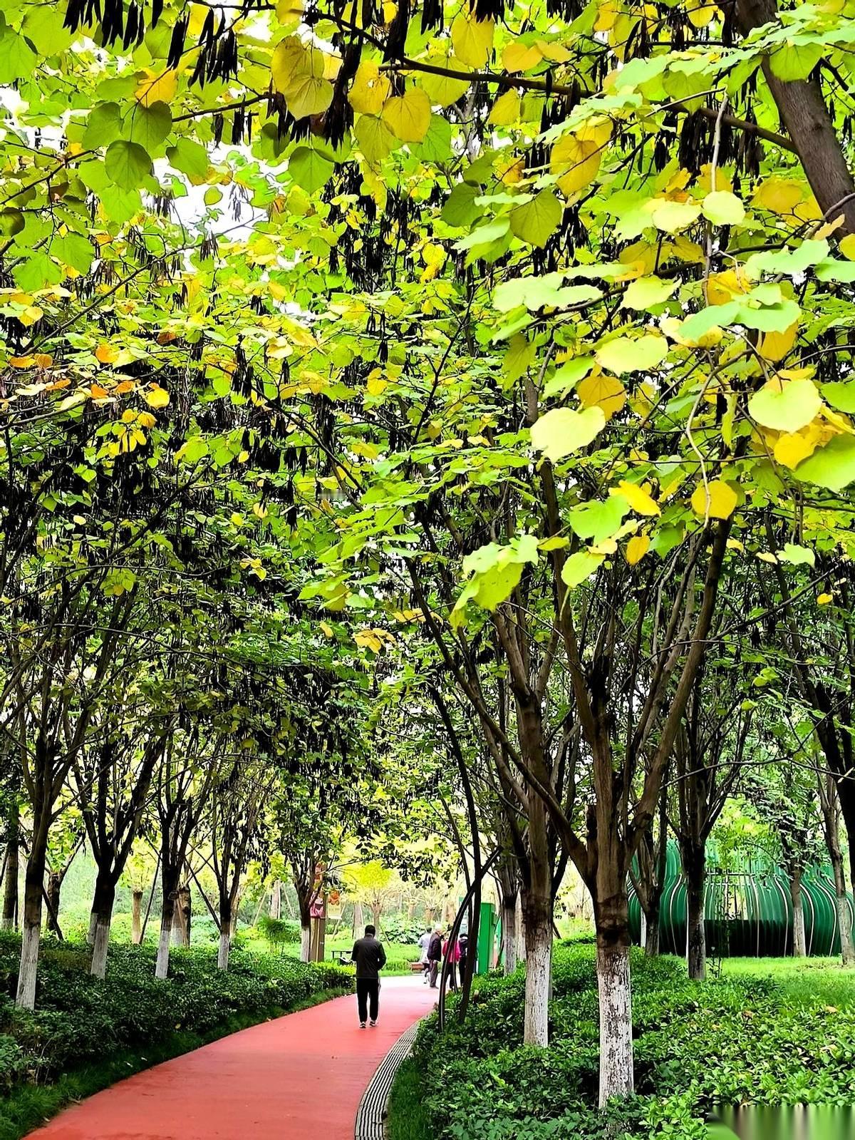 我总算知道,西安的“幸福林带”为什么叫幸福了。 真不是吹的。 被工作按在地上摩擦了一周,脑子快烧干了,就想找个地方待着。 地铁8号线,韩森寨D口一出来,我人都傻了。 那一大片红黄绿,跟打翻了的调色盘似的,直接糊你脸上。 阳光从树叶缝里漏下来,一闪一闪的。 这地方最妙的是,它不是那种需要你打卡拍照的景点,它就是一个巨大的“人间缓冲带”。 让你紧绷的神经,有地方放放风。 让你乱成一团的脑子,能有机会喘口气。 什么都不用想,就顺着带子一直走,一直走…… 旁边是遛娃的,跑步的,谈恋爱的,每个人都松弛得不像话。 走着走着,你就觉得,嗨,那点破事儿,好像也没那么重要了。 这大概就是“幸福”吧。