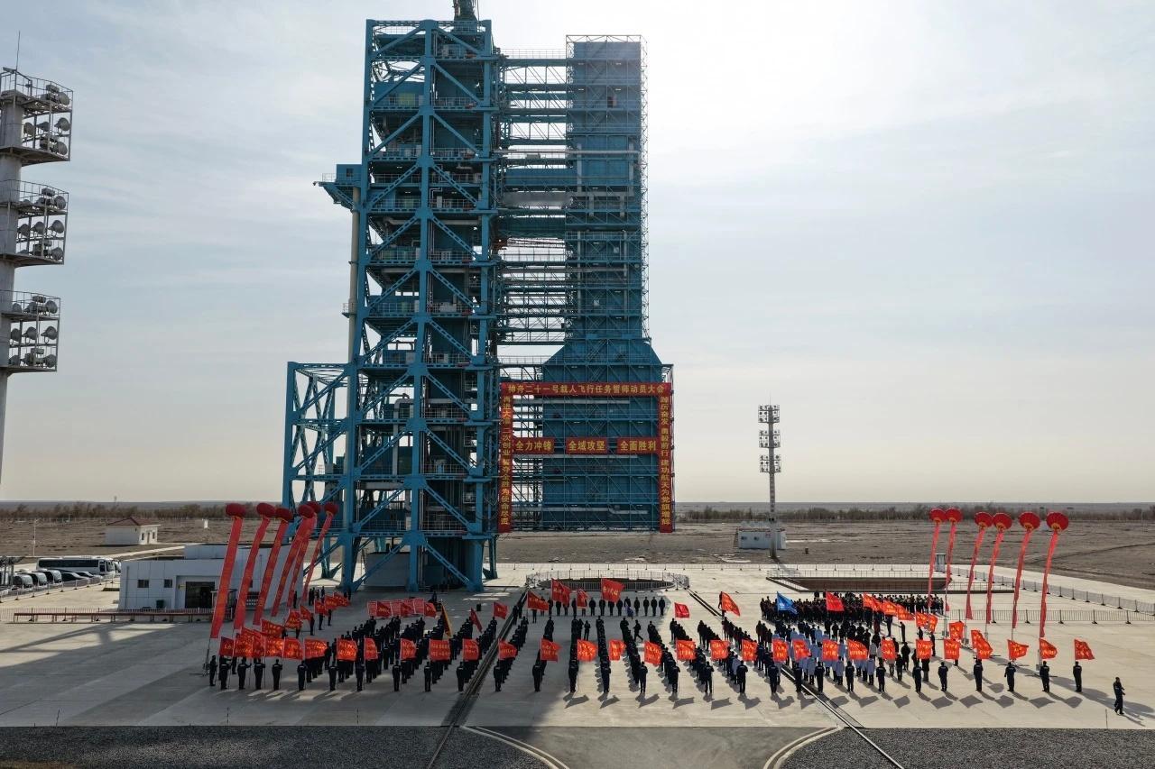 航天 神舟二十一号载人飞船和🚀火箭组合体垂直转运! 乘组今天抵达酒泉卫星发射中