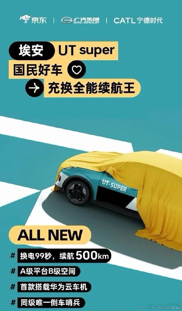 三大巨头联手搞大事!广汽、京东、宁德时代打造的“国民好车”正式定名埃安UT super,10万级价位直接拉满配置诚意。