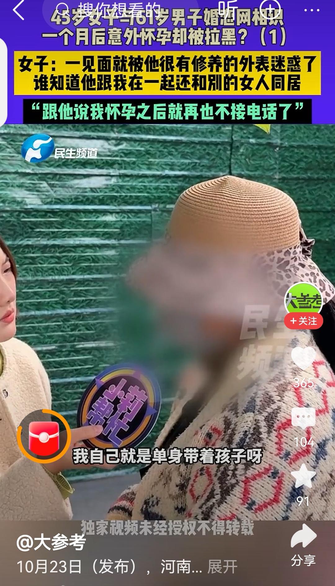 “说完怀孕,他电话再也打不通了… 据@民生频道报道,河南一女子的遭遇令人心寒。她与一男子交往一个月后怀孕,对方却玩起消失。女子透露,该男子实则“脚踏两条船”,早已与他人同居。更无奈的是,她本身已是独自抚养孩子的单身母亲。 信任一旦错付,带来的可能是双重伤害。 你觉得该如何识别这类情感骗子?情感 老年人情感骗局