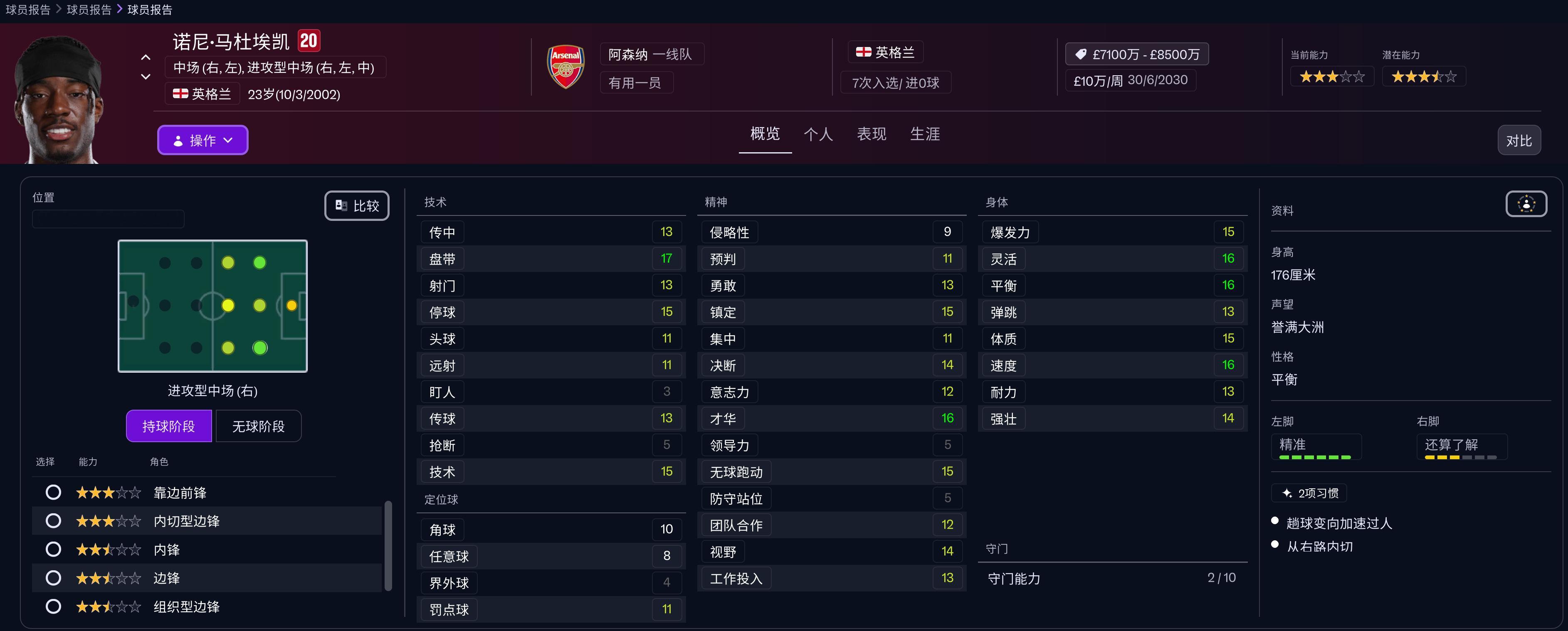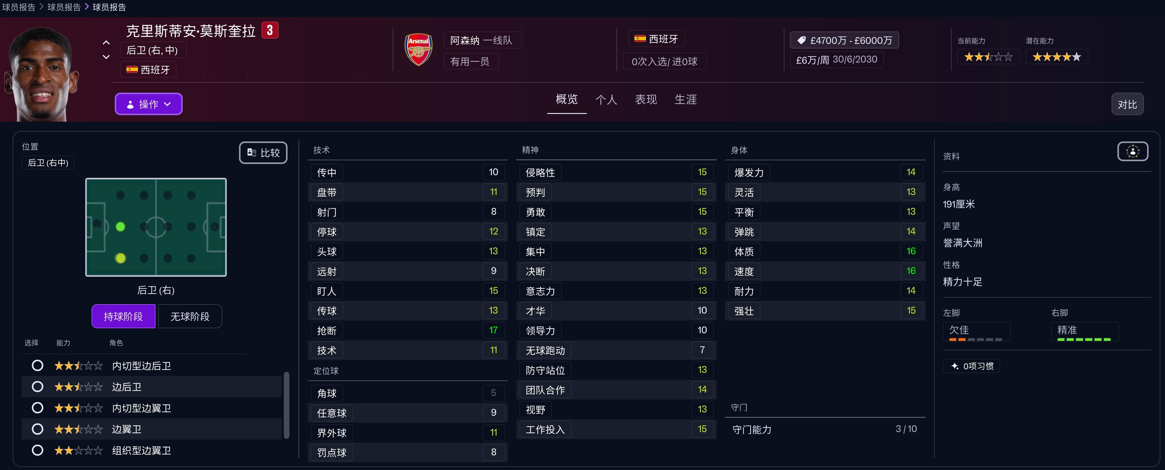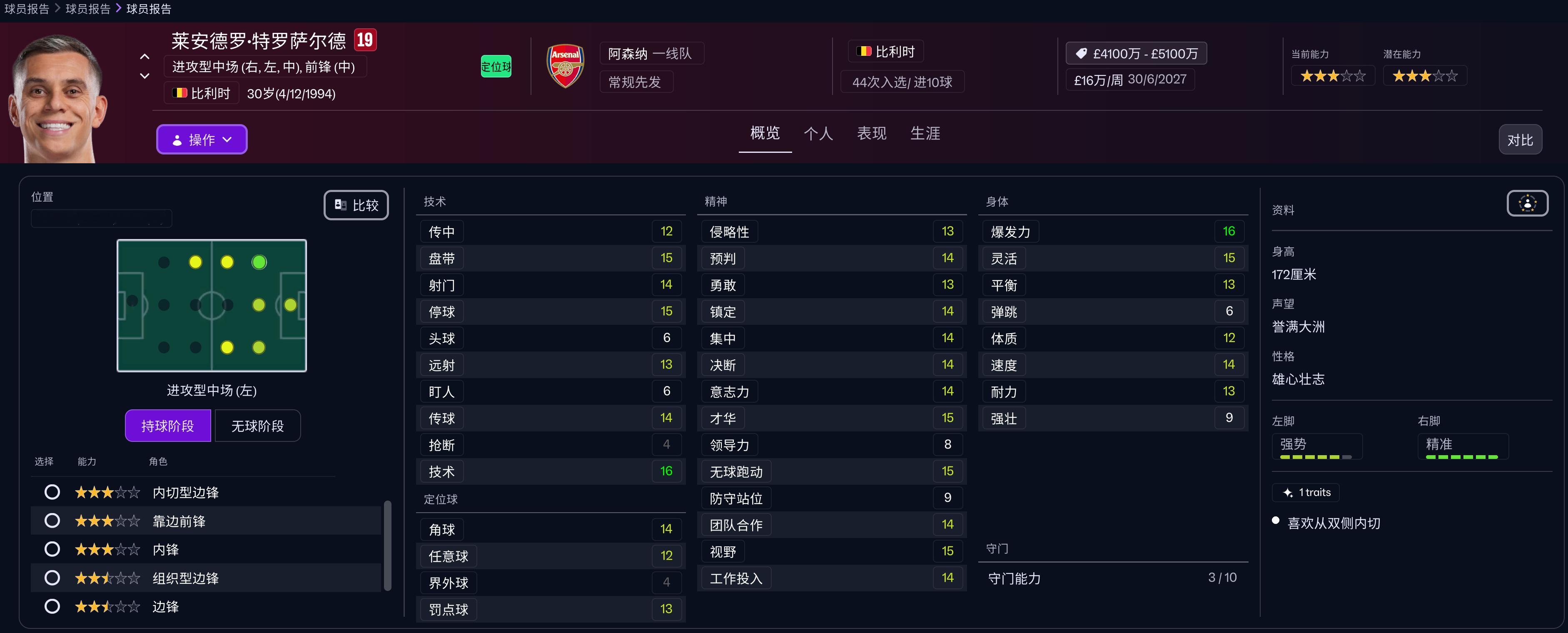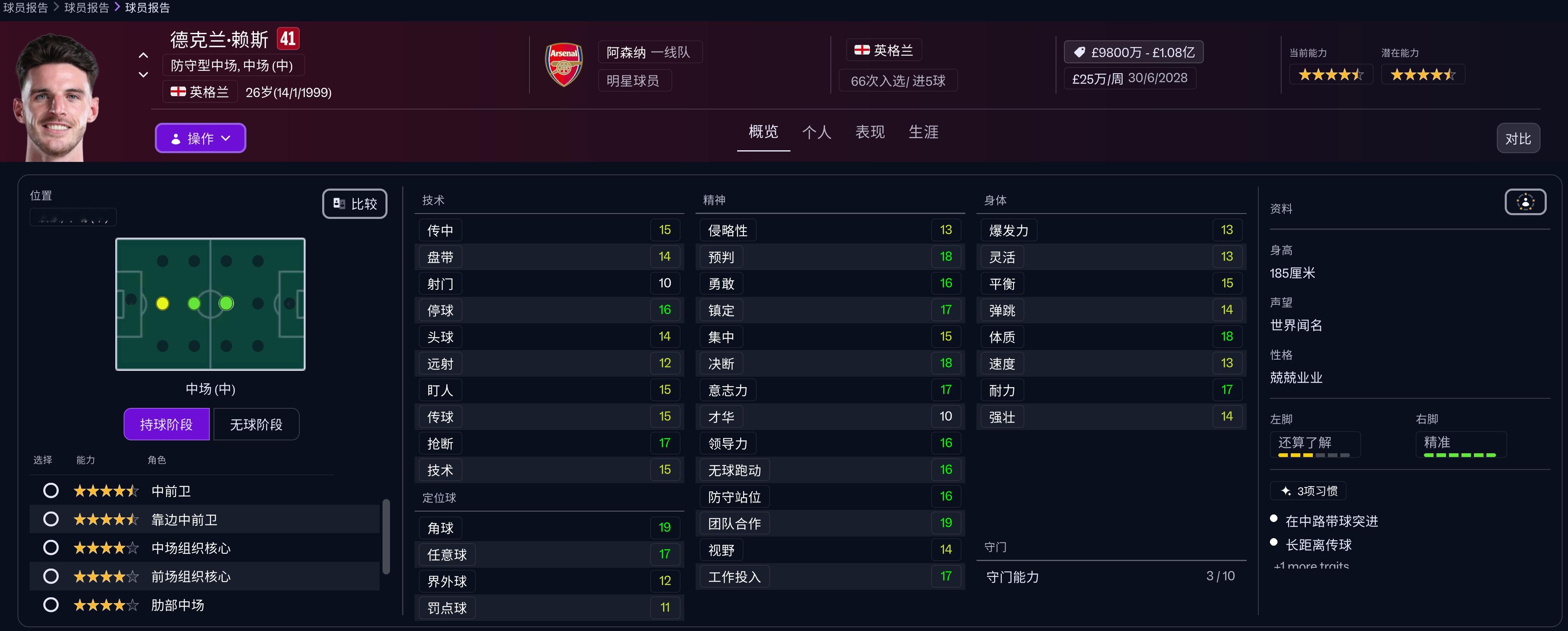 早起赶紧下好了FM26 Beta,贴几个厂子球员的属性图(可惜没找到道曼,年龄太小?)