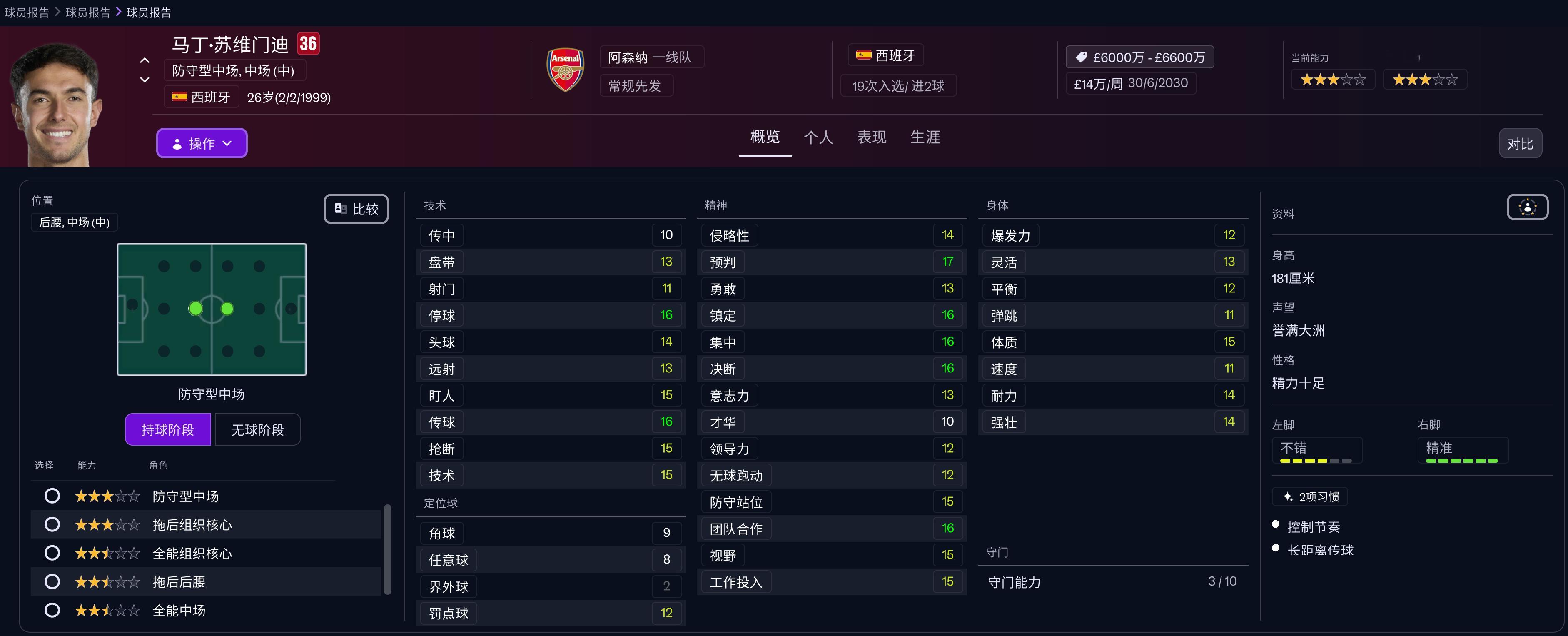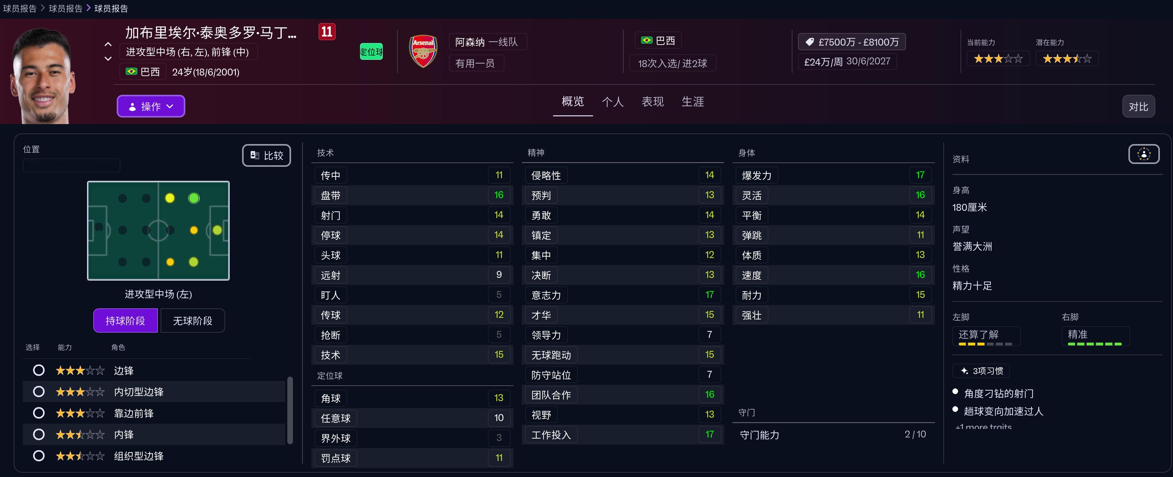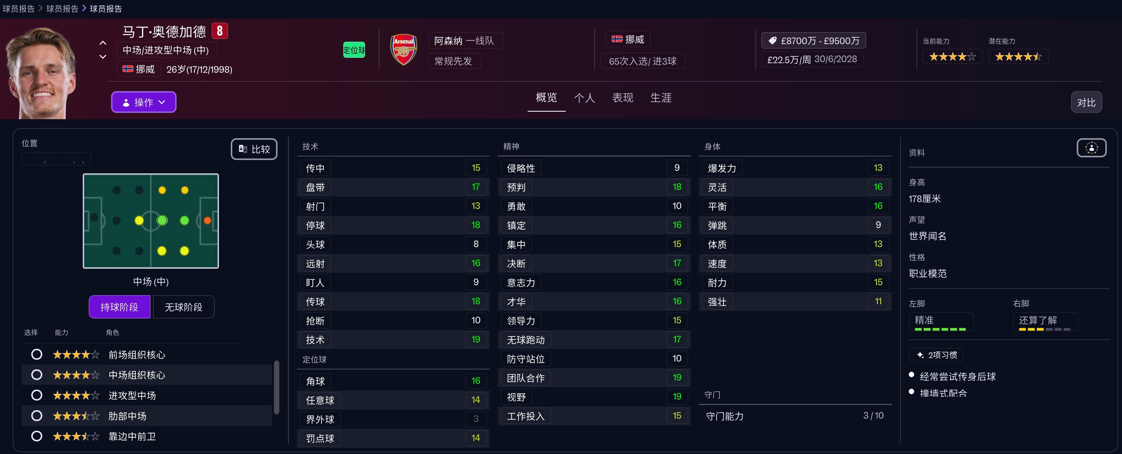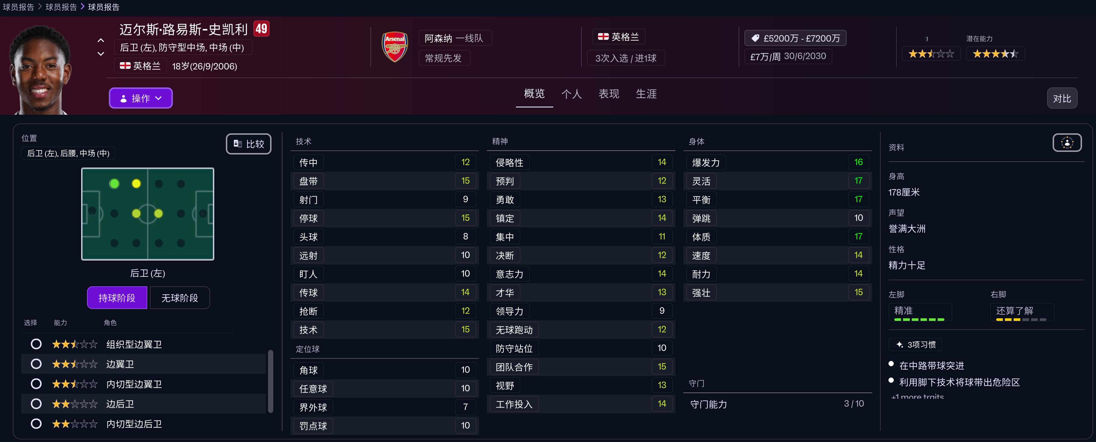 早起赶紧下好了FM26 Beta,贴几个厂子球员的属性图(可惜没找到道曼,年龄太小?)