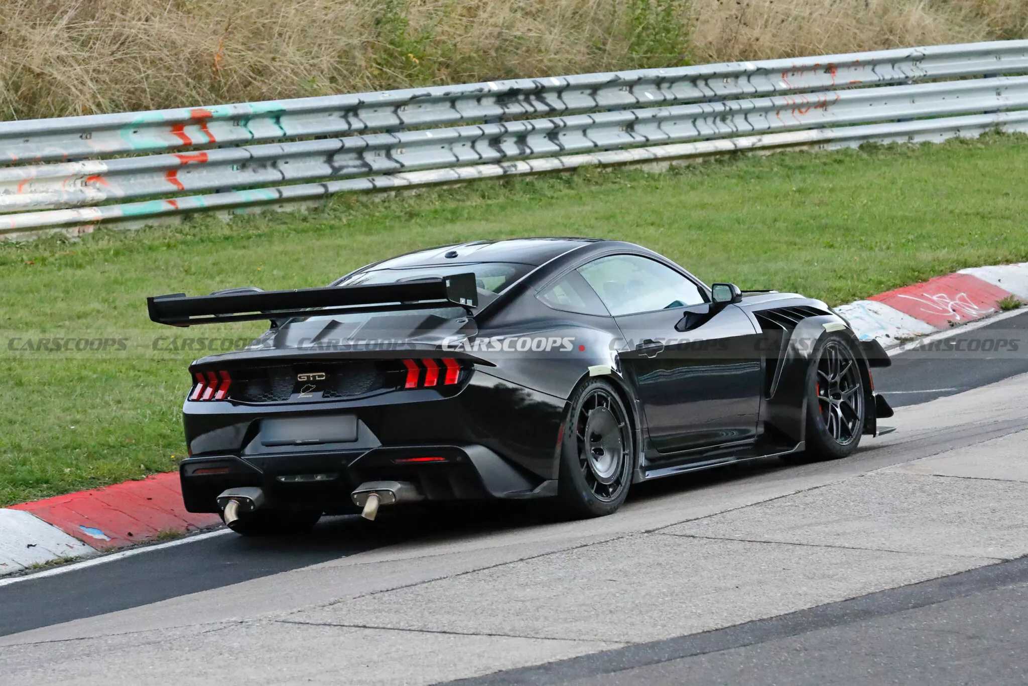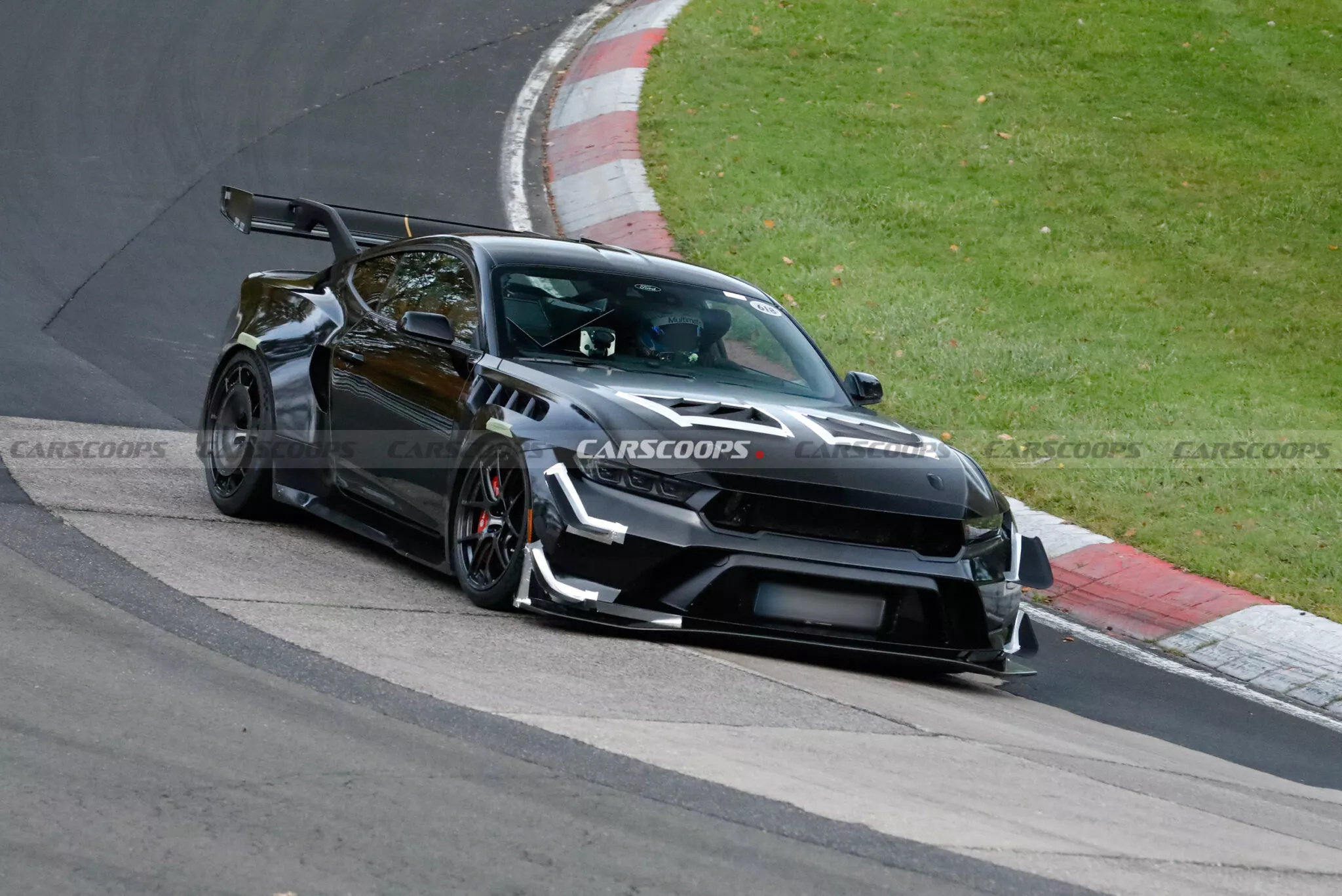 福特Mustang GTD原型车现身纽北,配上了新的空力件,后轮毂引入空力设计,还用上了新的引擎盖,预计福特是希望升级Mustang GTD去冲击美国车在纽博格林北环的单圈记录~[吃瓜]