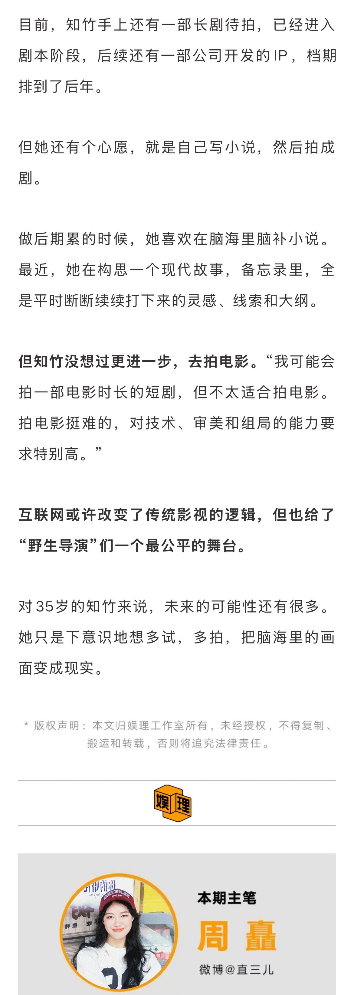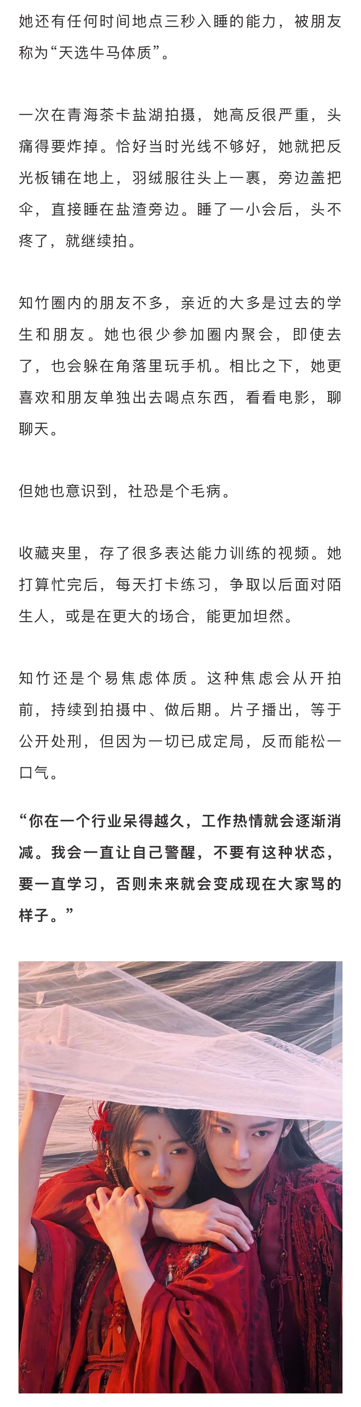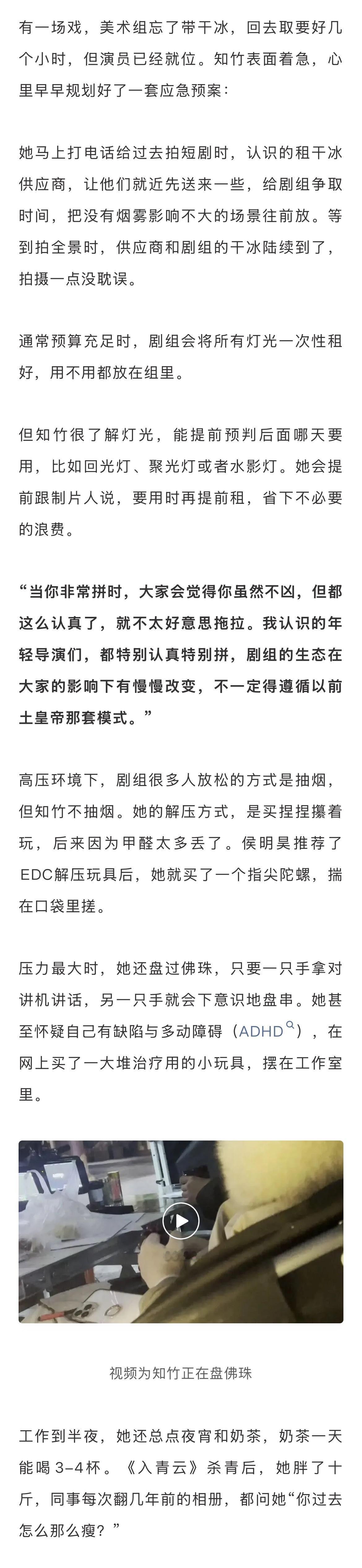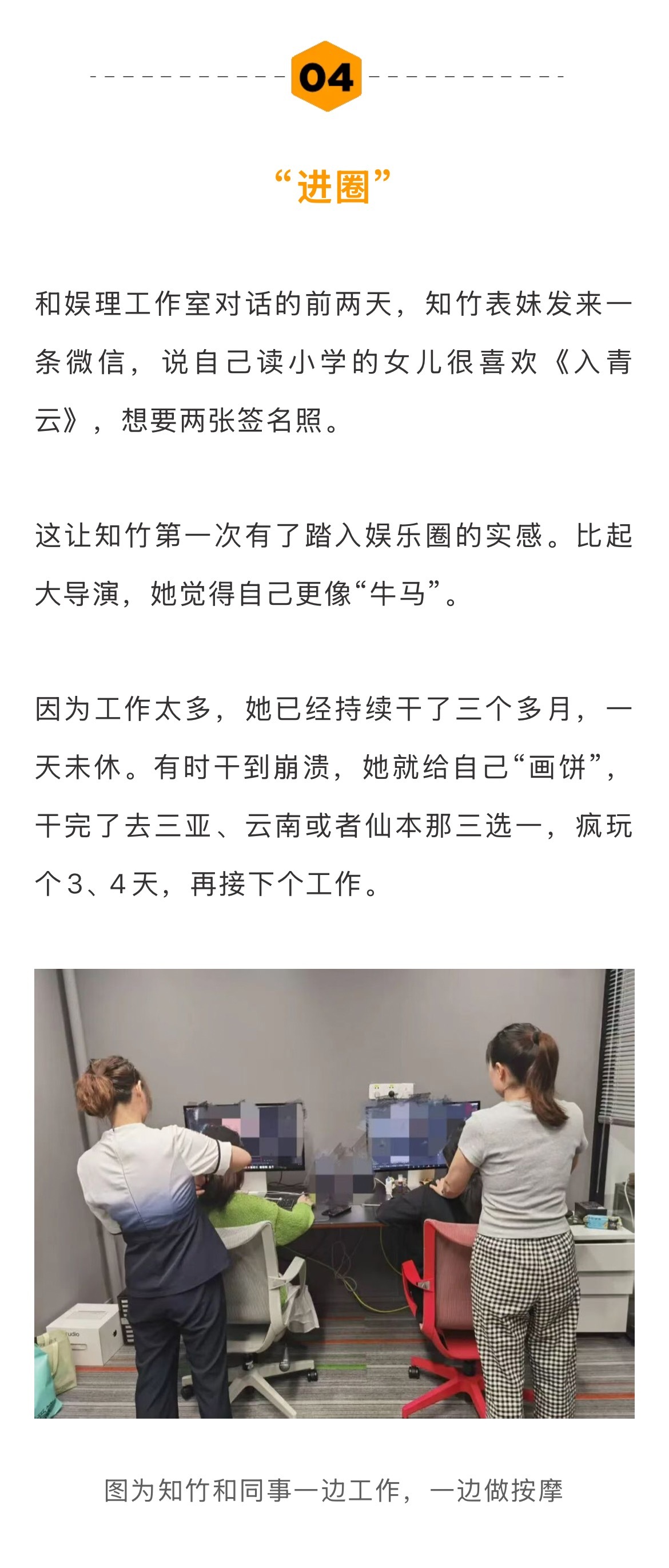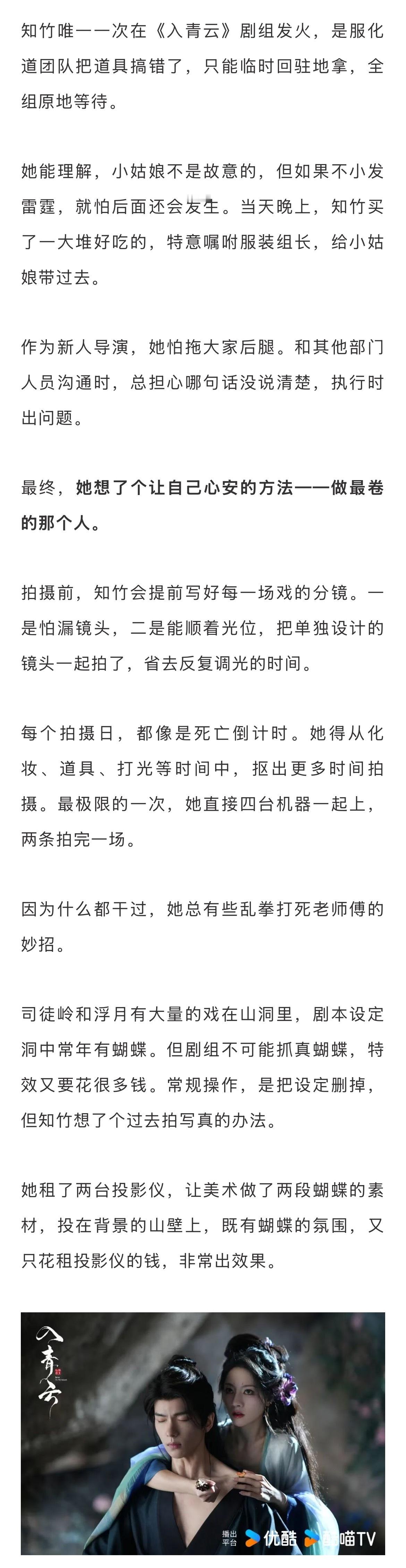 做导演前,知竹总觉得艺人是另外一种人类,和普通人活在两个世界。拍完《入青云》,她才明白过去的那种想法,是因为艺人身边的人太多了。等到人一少,单独相处时,大家都是普通人,很容易熟起来。“我听过太多同行吐槽谁谁谁很难搞。但我很幸运,《入青云》的演员太好了,小侯跟晓晓又努力,又认真,又配合,我很幸运。” 大咖茶话会↓