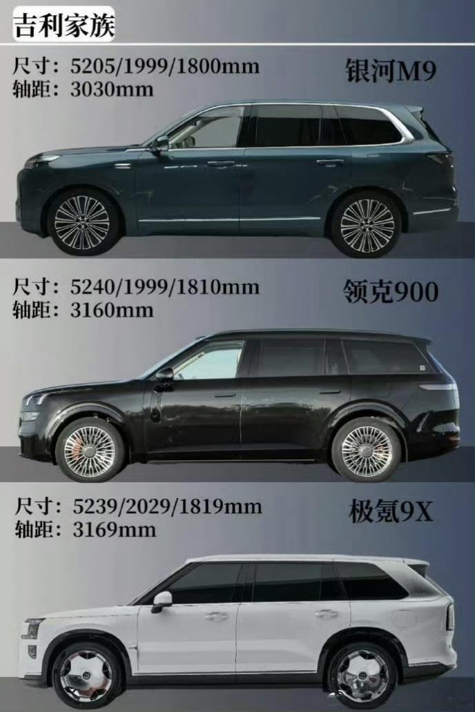 吉利真是架构大师 银河M9-领克900-极氪9X,这个梯队规划的挺好的,而且每款车都不会相互抢市场,定位精准。 银河M9: 18-24万区间 领克900: 29-40万区间 极氪9X: 47-60万区间 三个品牌是体系作战,而不是相互倾轧,再来个极氪8X,站稳45万区间就完整了。 图2: 银河M9上市一个月破万了。【来自懂车帝车友圈】