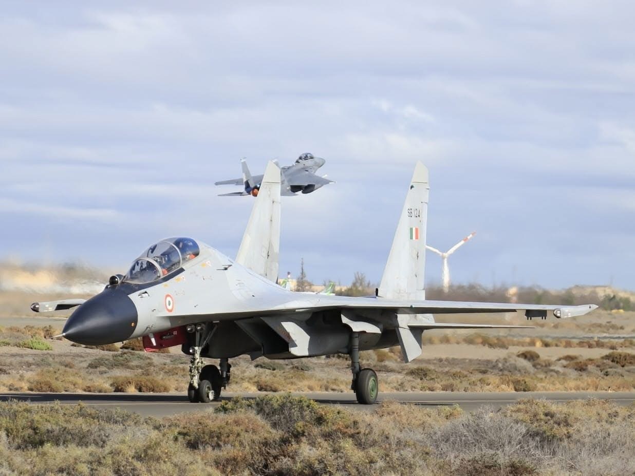 印度空军由苏30MKI和C17两型机组成的特遣分队抵达西班牙甘多空军基地参加OCEAN SKY 25多国空军联演 军用飞机信息汇