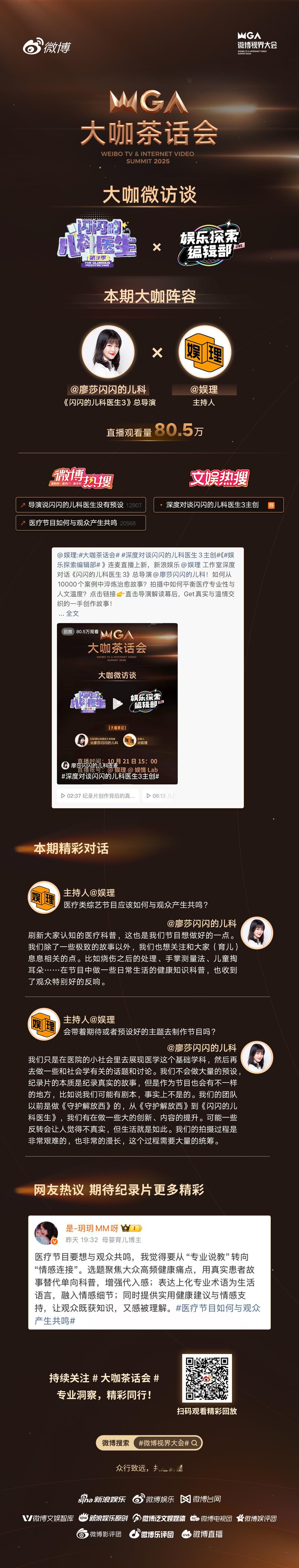 大咖茶话会深度对谈闪闪的儿科医生3主创 新浪娱乐工作室 x《闪闪的儿科医生3》总导演 娱乐探索编辑部 对谈观点新鲜出炉~导演坦言:医疗节目要破圈,除了呈现极致病例,更要深耕日常健康细节,让科普真正服务生活。戳图解锁更多精彩对话~↓