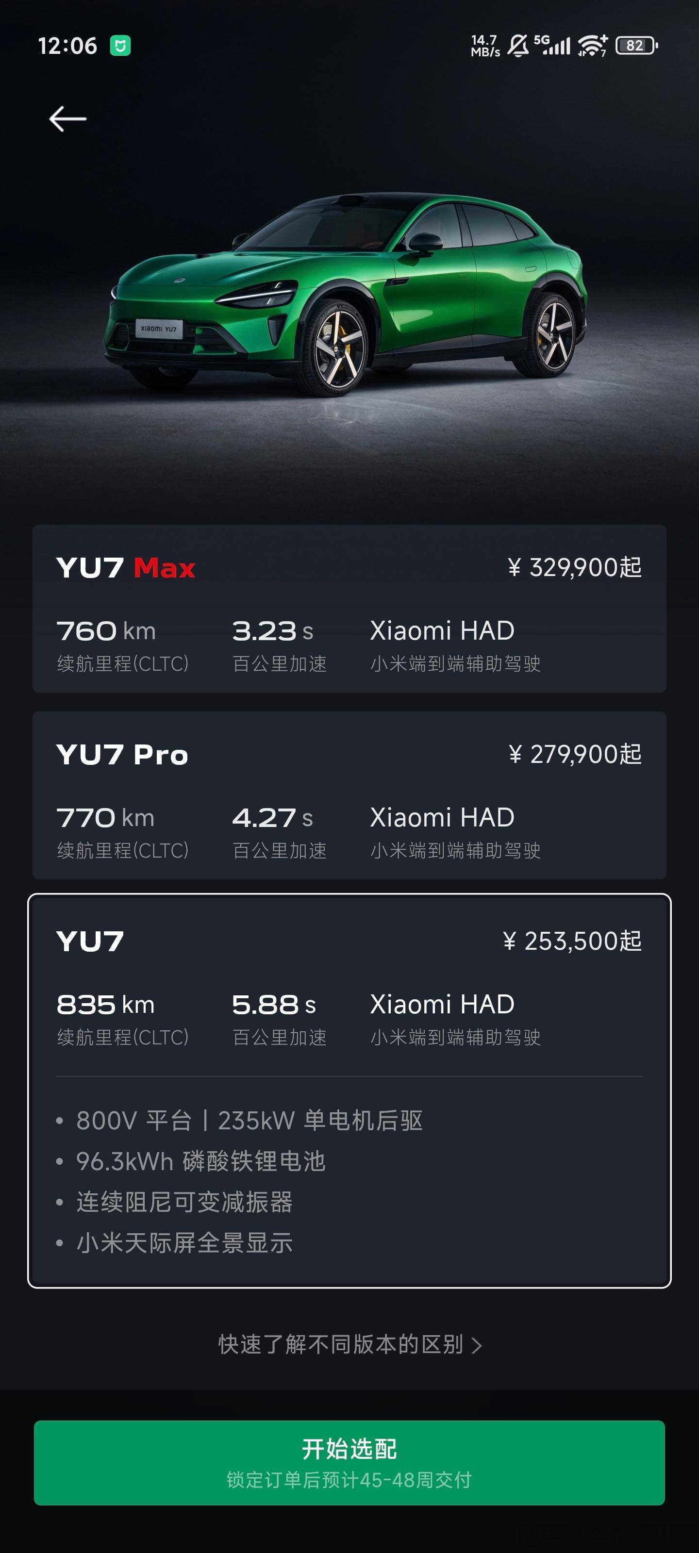 从目前在APP下单的页面来看,交车最快的居然是SU7 Ultra,下个月就能提。而等车时间最久的是YU7,明年春节都不一定能提上车。